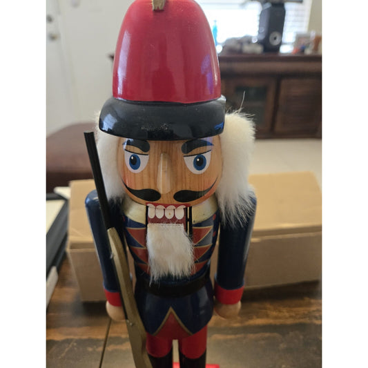 14'' King Nutcracker Soldier & Rifle Wooden Vintage Decor Gift Red & Blue