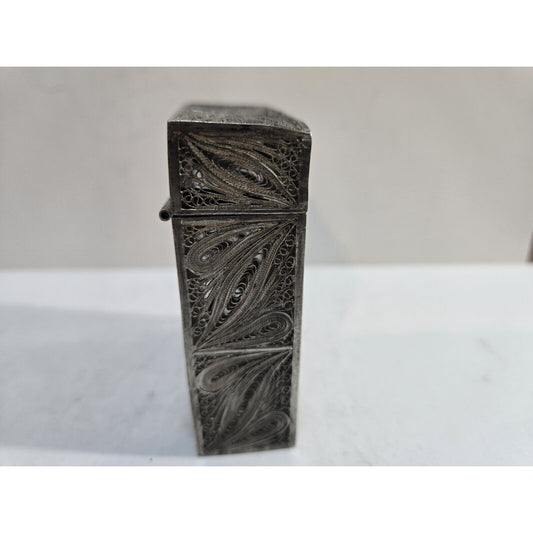 Antique 900 Silver Filigree HANDMADE Cigarette Case 3" X 2.25" 7553/3
