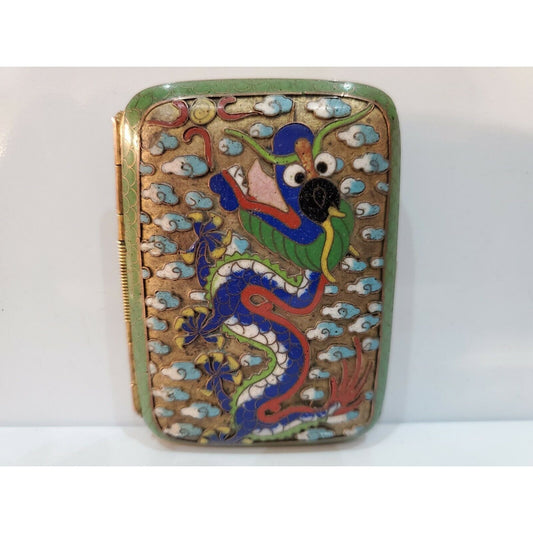 Antique ORIENTAL CLOISONNE ENAMEL Dragon Cigarette Case 3 x 2"