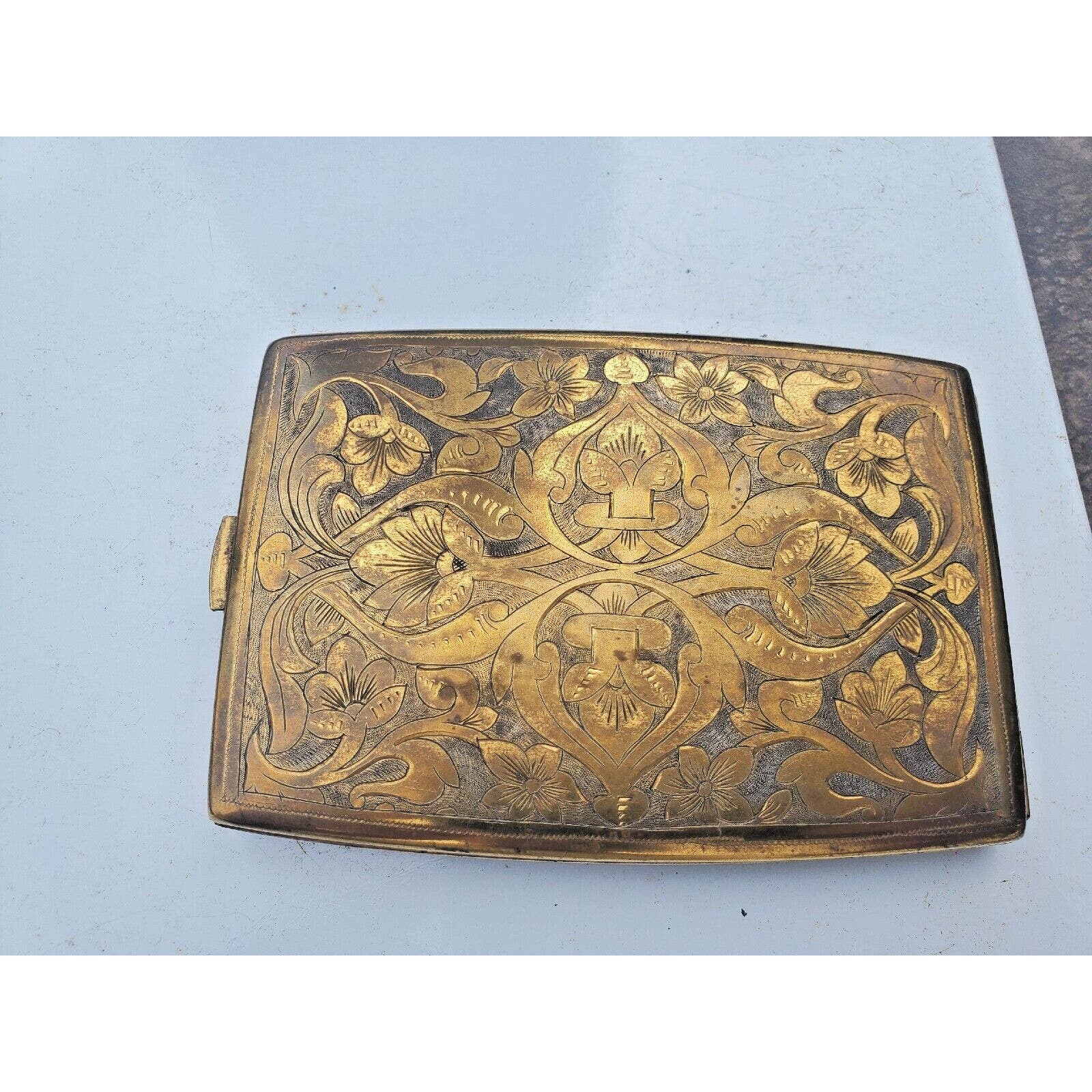 Antique Persian Gold Tone Brass Cigarette Case 4 3/4 x 3 1/4 5513/15