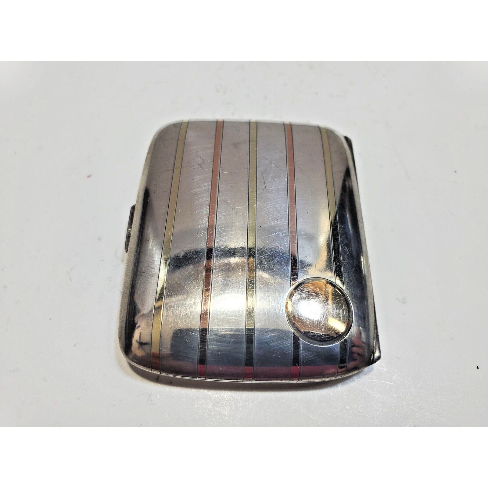 Antique Sterling Silver, Gold Striped Cigarette Case 2 1/4 x 1 3/4" 6559/3