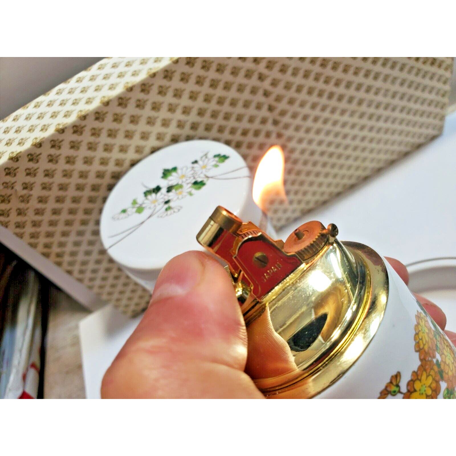 FINE CHINA SMOKING SET ASHTRAY, Cigarette CASE, Working LIGHTER Orig Box 6566/48
