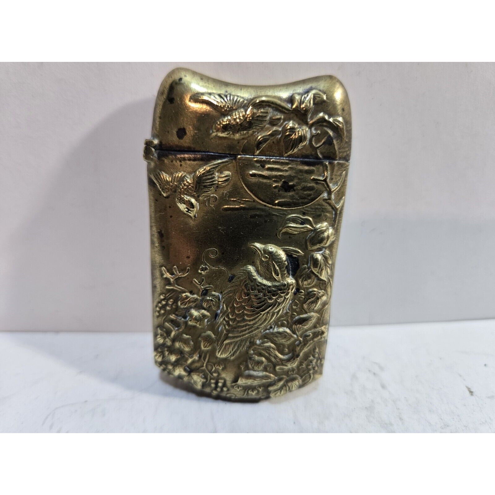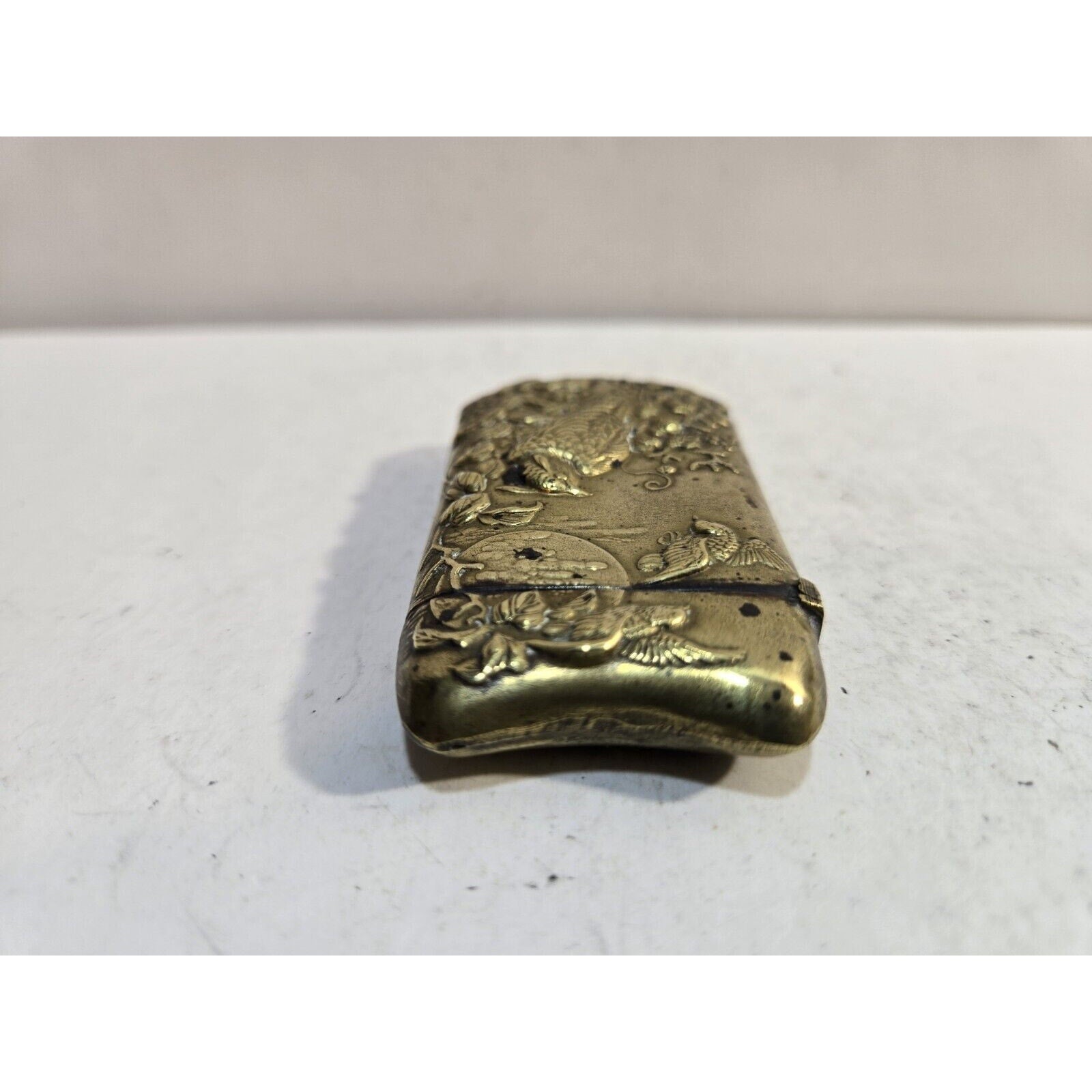Japanese Antique Brass Match Case Safe Holder Striker, Bird & Flowers 7293/31