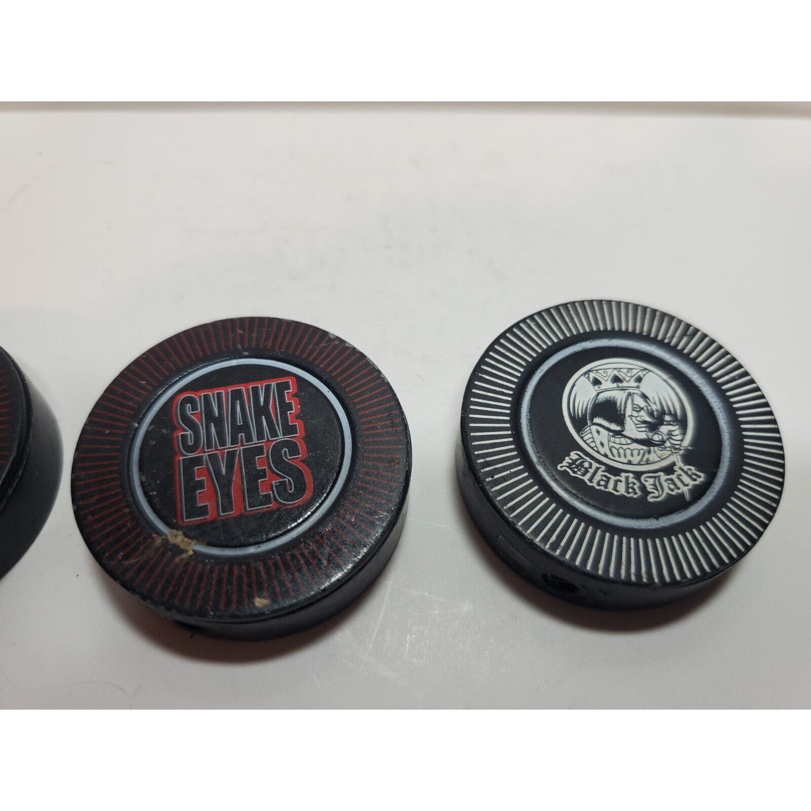 Lot Of 3 Casino Poker Chip Lighters, Black Jack, Snake Eyes, Royal Flash 5667/28