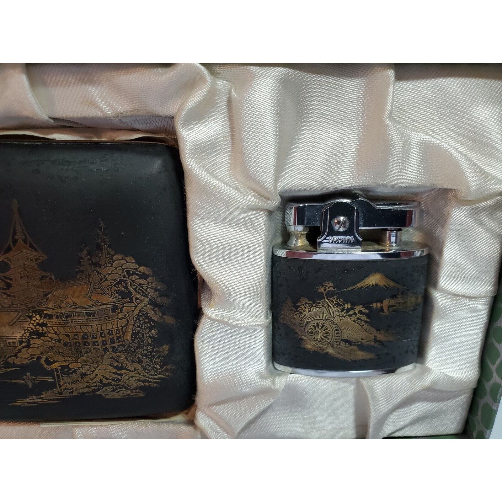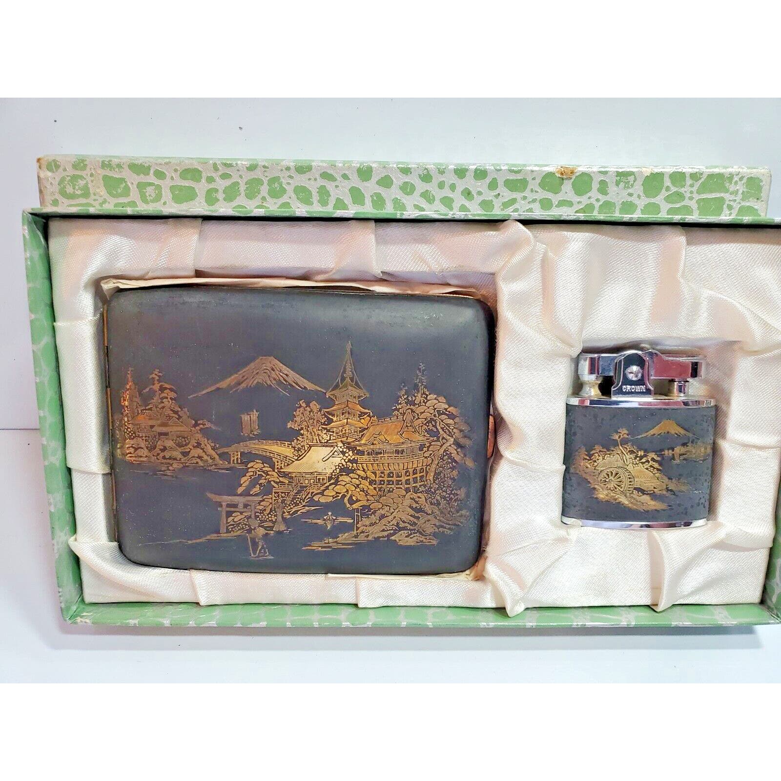 NOS Japanese Damascene K24 GOLD, SILVER Cigarette Case & LIGHTER SET 55/2