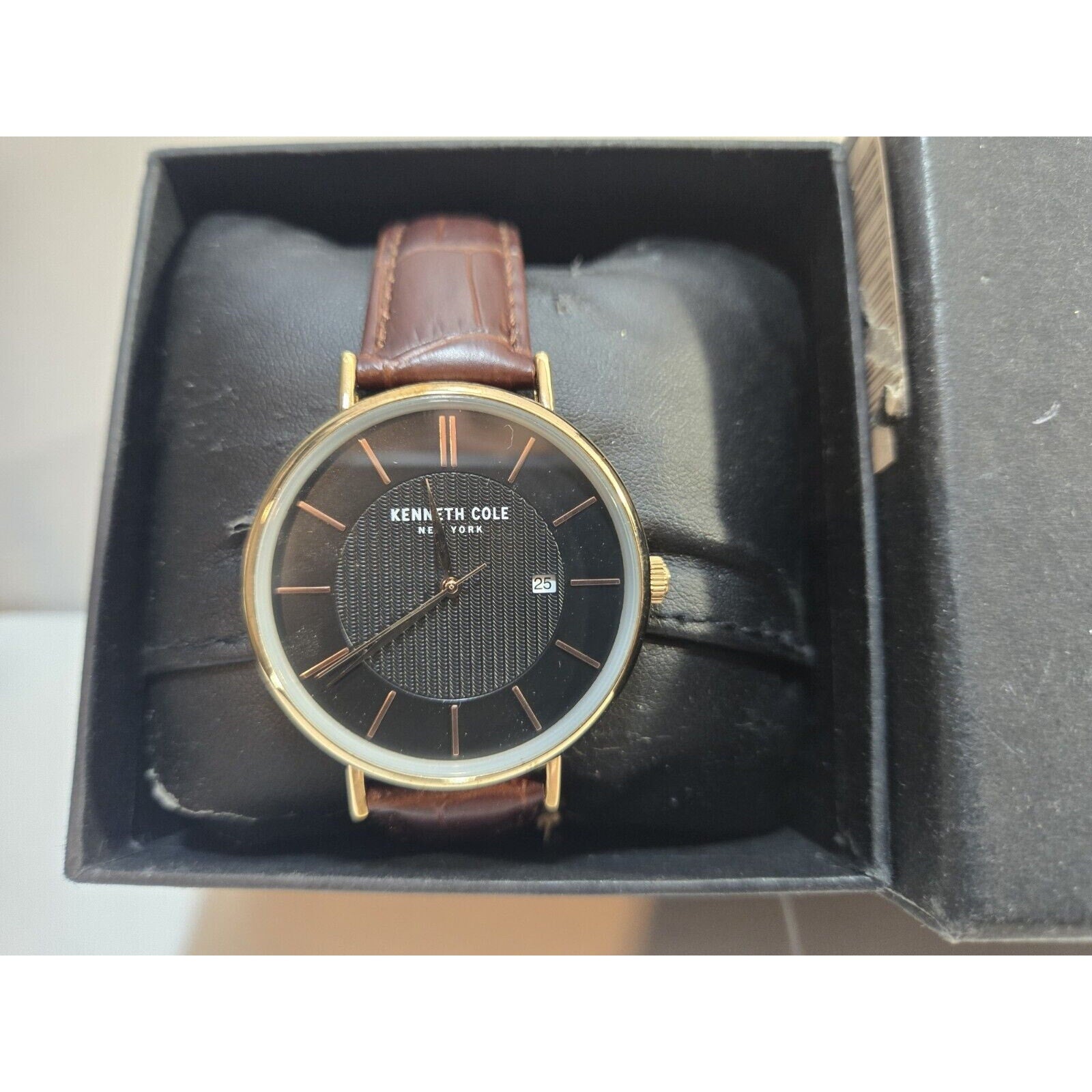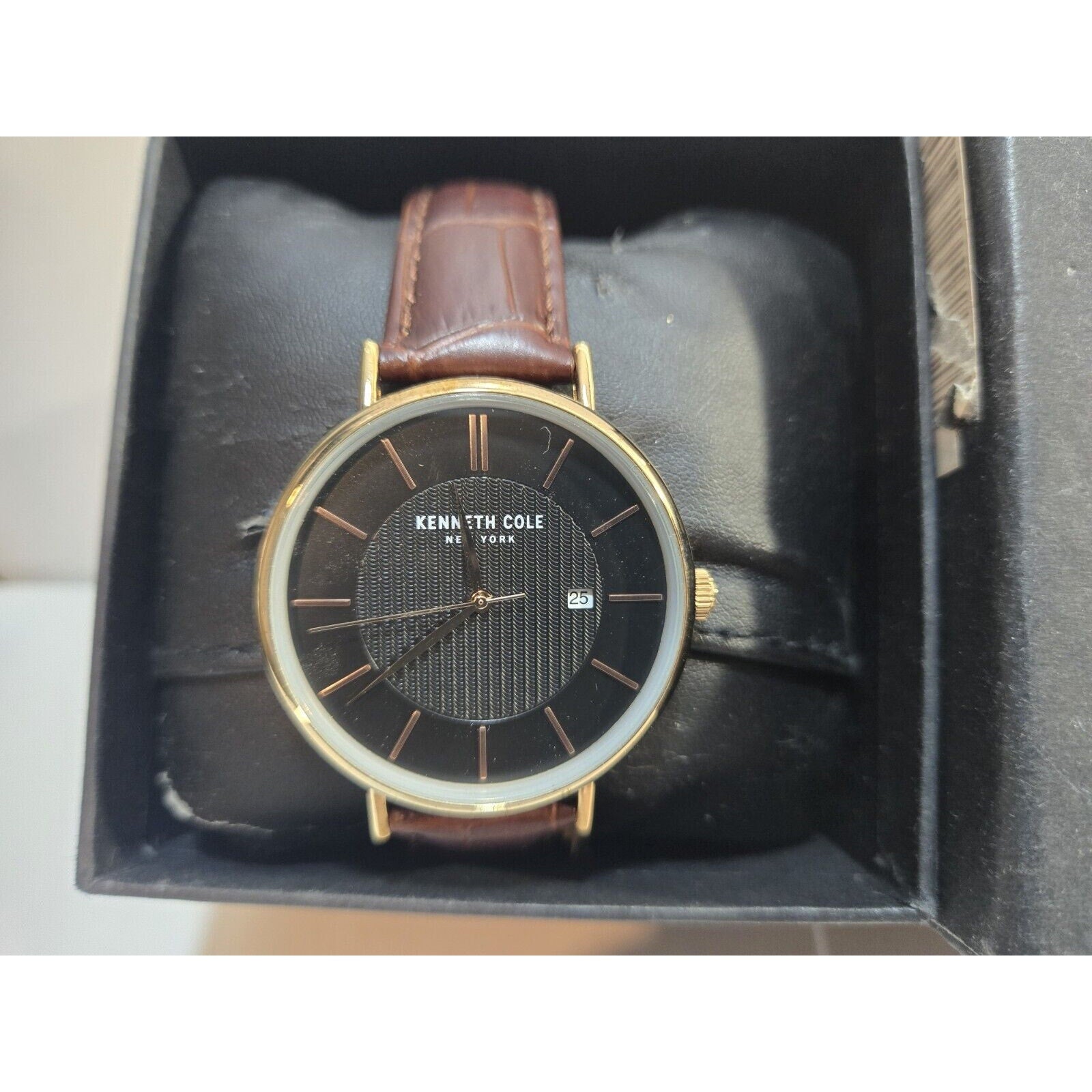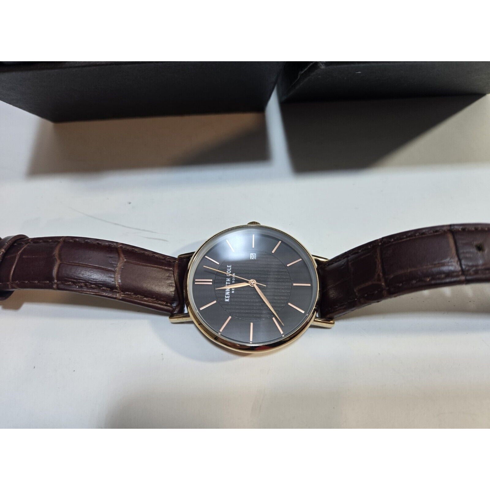 NOS Kenneth Cole Brown Leather Unisex Watch, Original Box