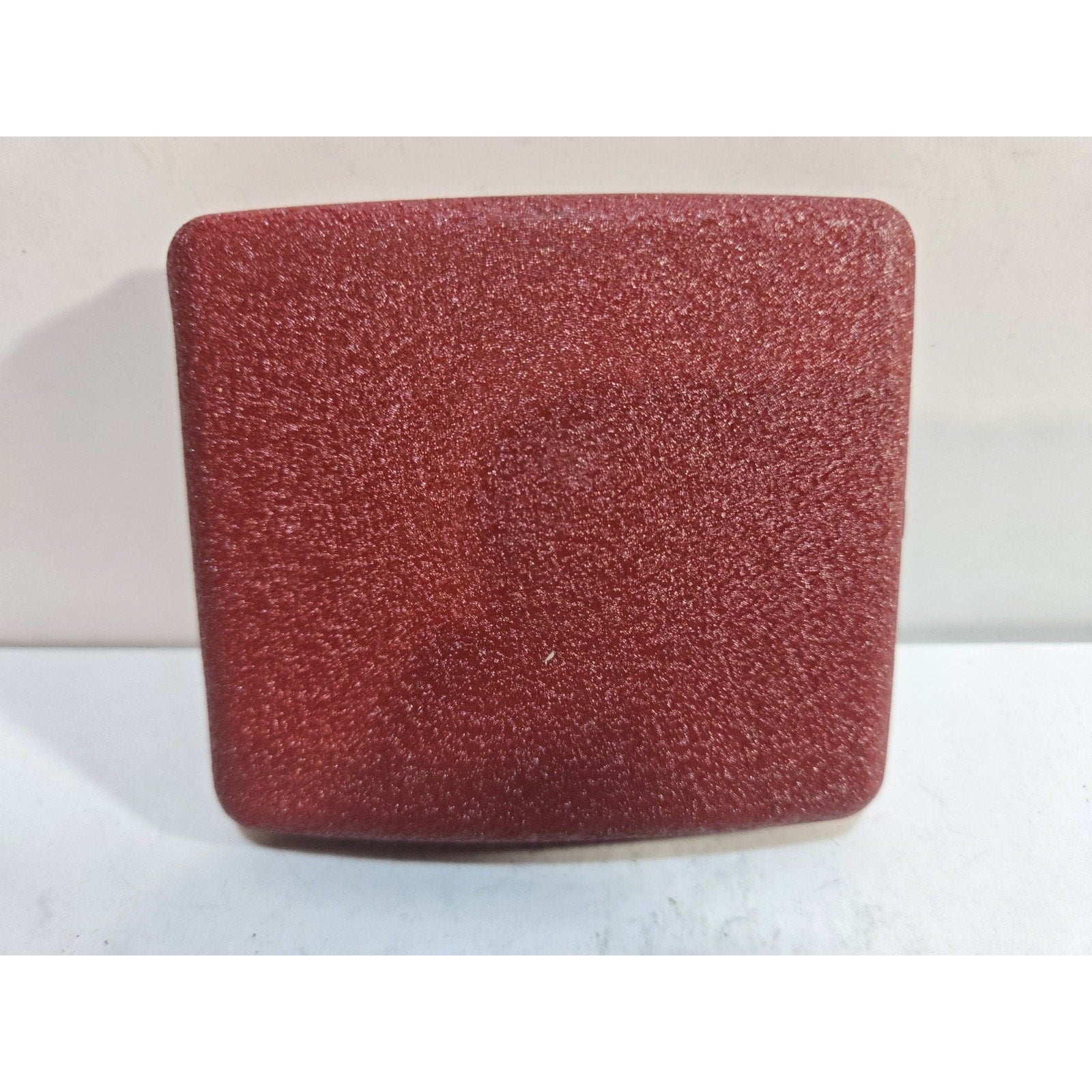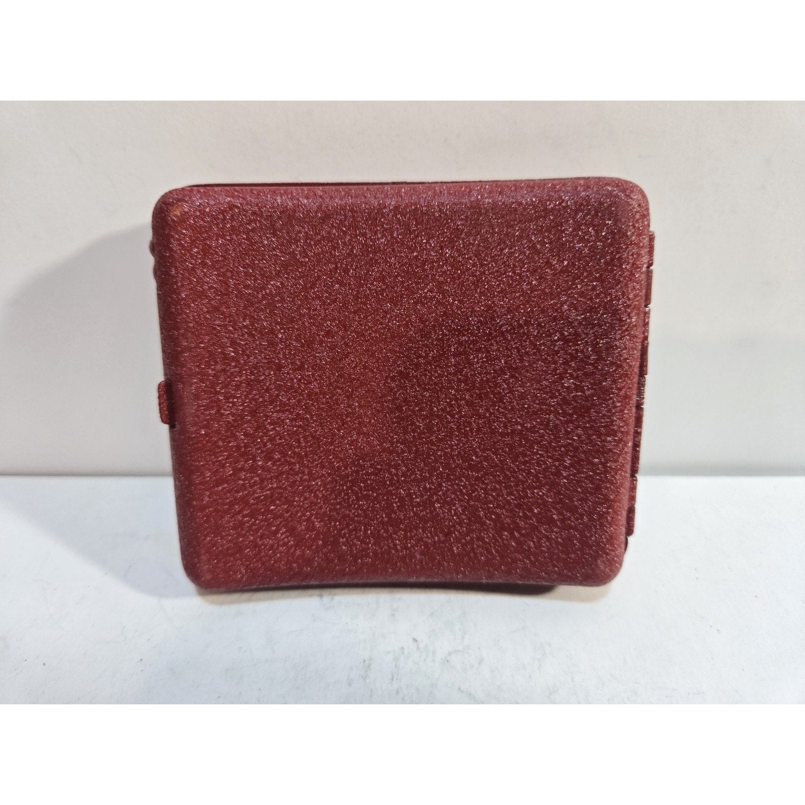 This vintage red cigarette case was manufactured in the United States and is in new old stock (NOS) condition. The case measures 3 1/2 inches by 3 inches and comes in its original box, making it a collectible piece of tobacciana. Its vibrant red color and working mechanism add to its appeal as a functional and stylish accessory for storing cigarettes.
