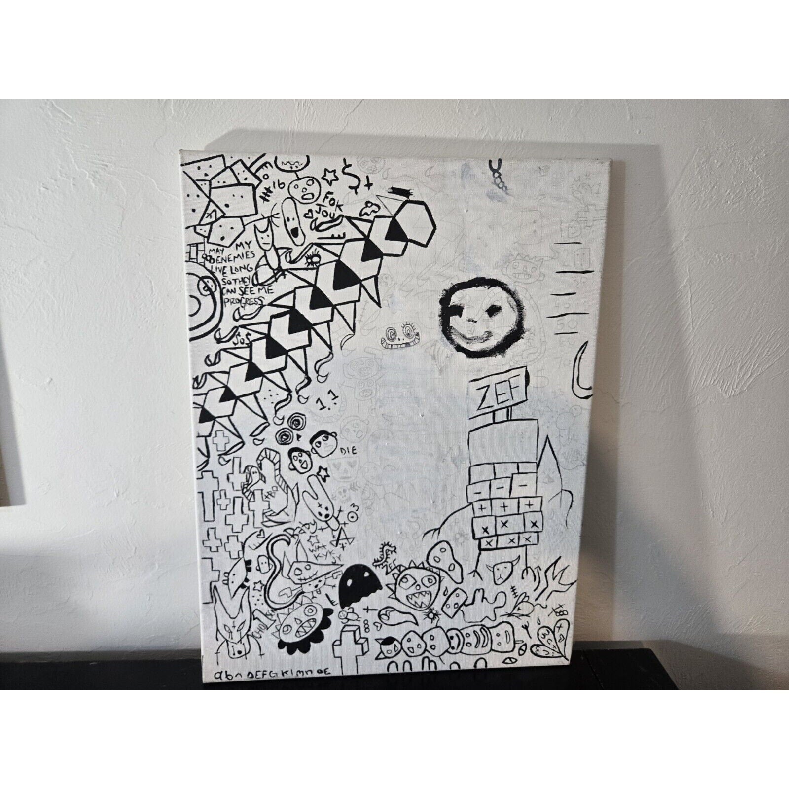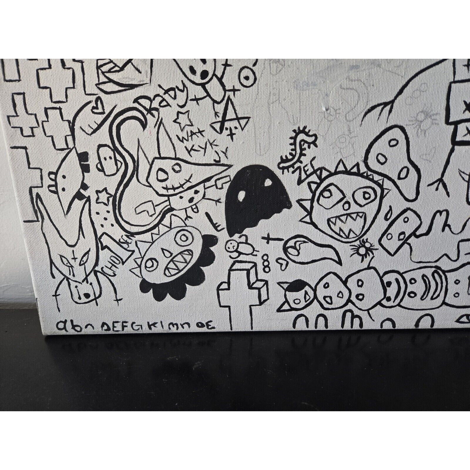 Oil Painting Crown Doodle Art Signed Graffiti 18 X 24"