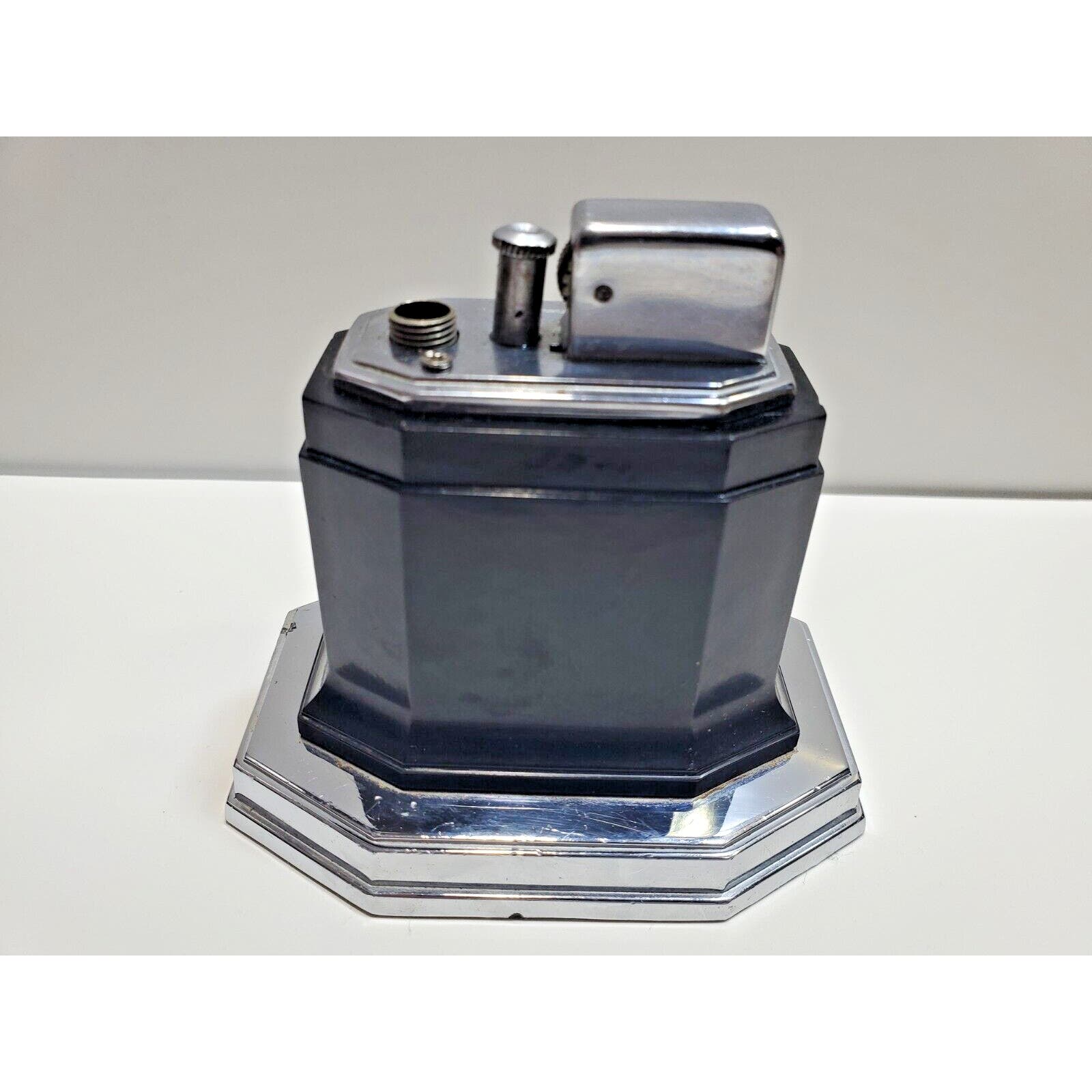 Ronson 1940 Art Deco Table Touch Tip Octette Black, Silver Tone Lighter 6506/13