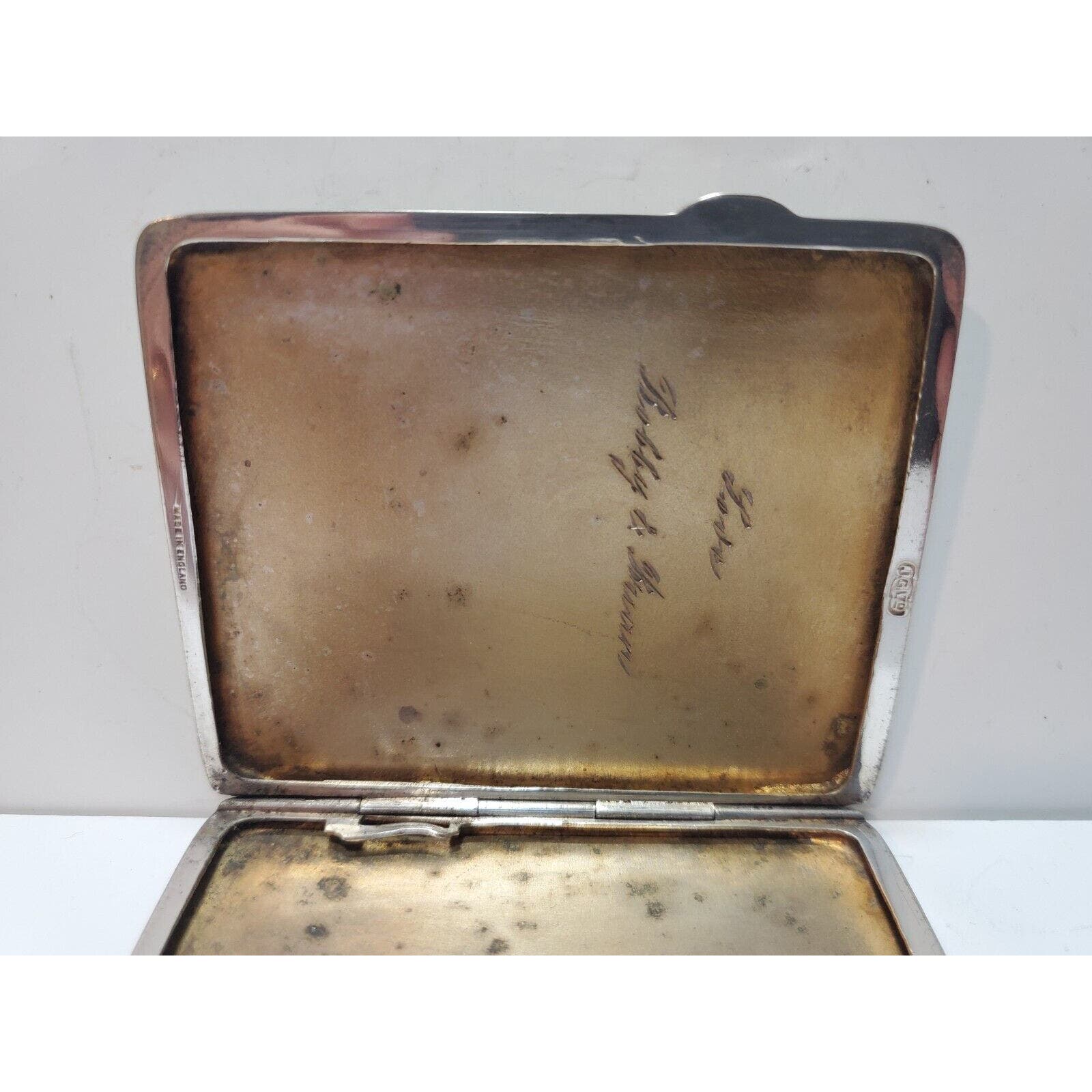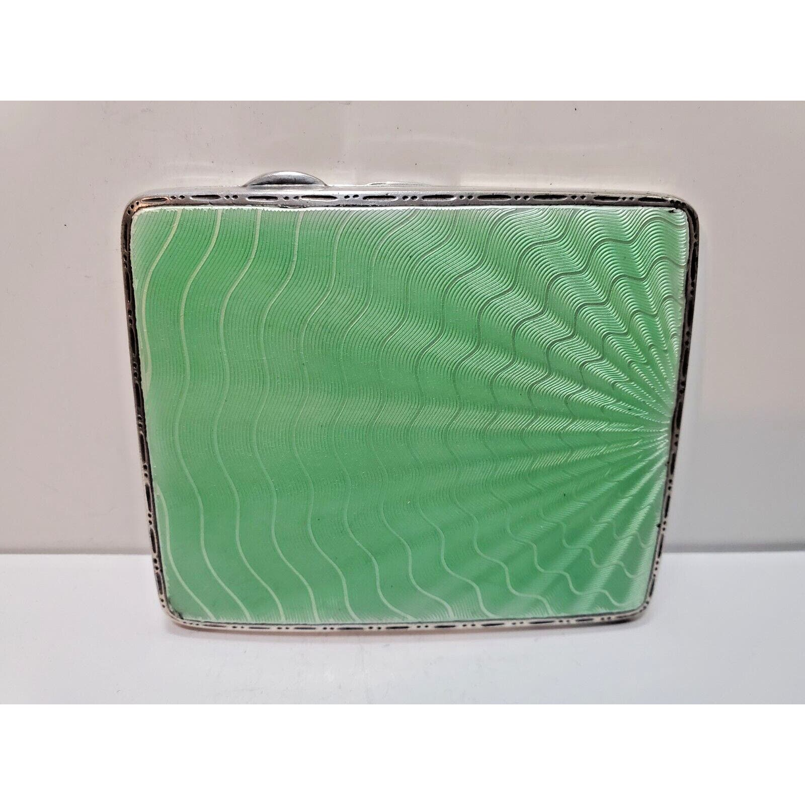 Unique Sterling Silver Guilloche Enamel Vermeil Cigarette Case England 6146/3