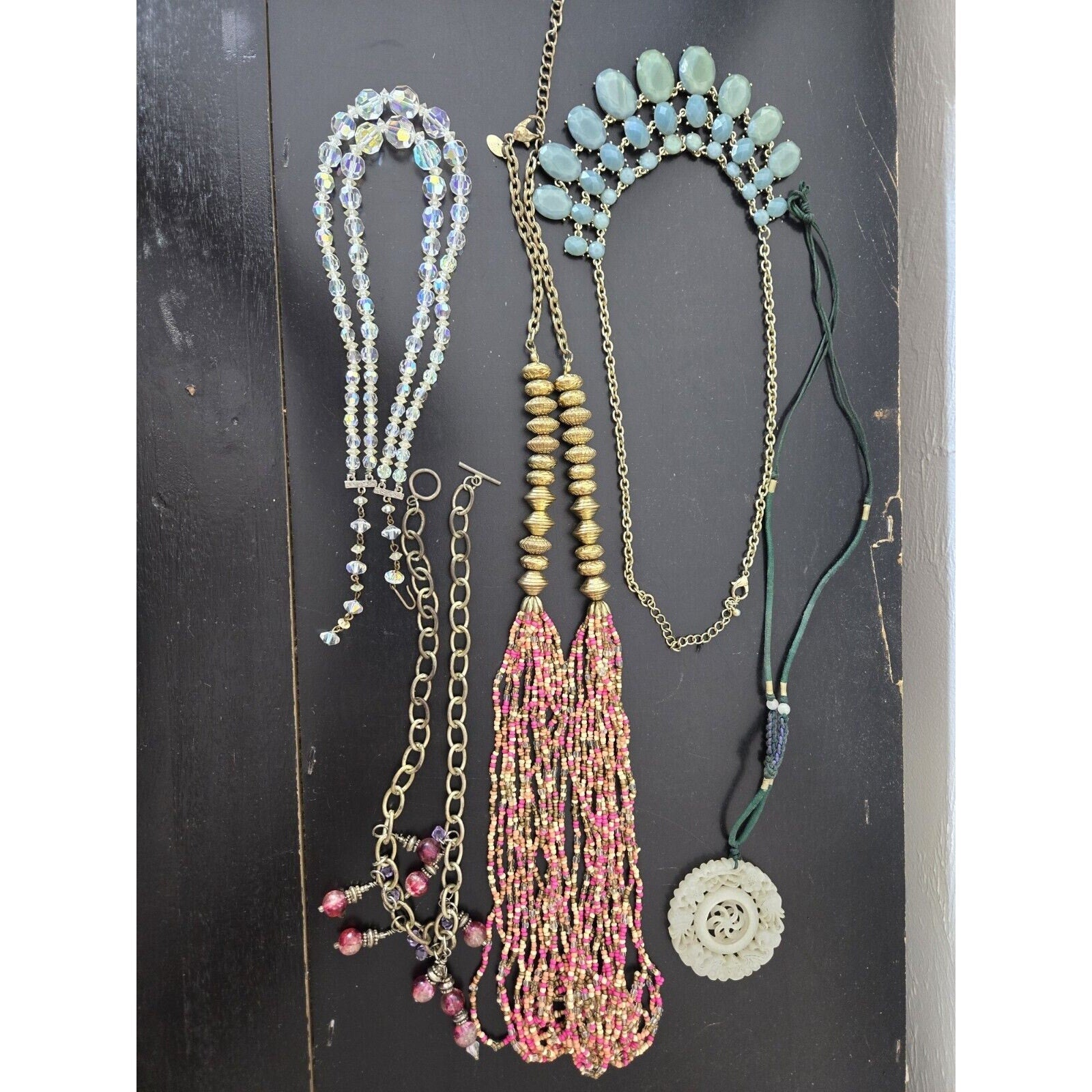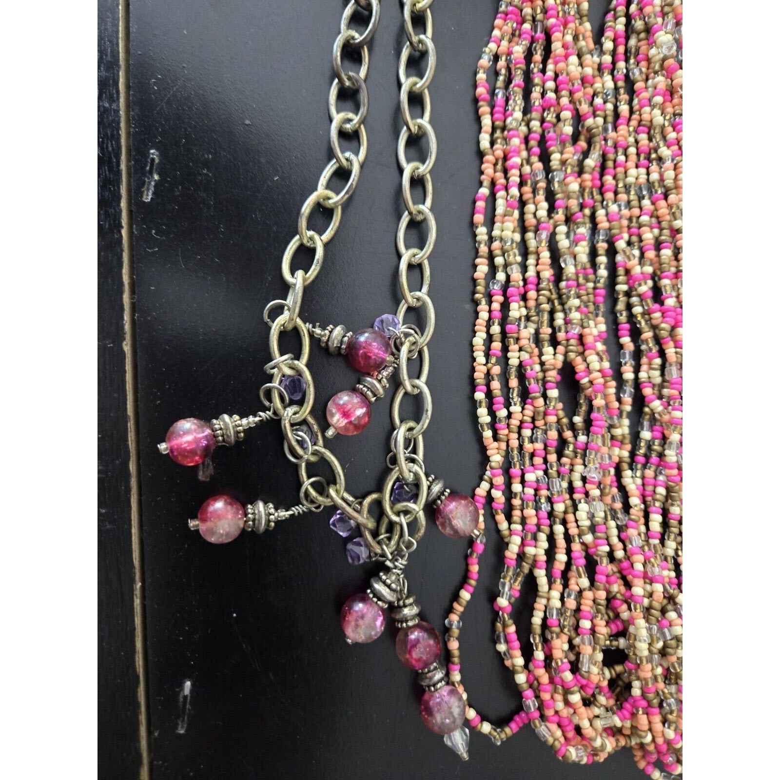 This lot features a mix of vintage and modern custom jewelry, perfect for any fashion enthusiast. The collection includes a variety of pieces, such as necklaces, all carefully curated to provide a unique and stylish mix. The jewelry department is specifically designed for vintage and antique jewelry, with a focus on mixed lots. This particular lot is perfect for those looking to add a touch of vintage flair to their wardrobe. Don't miss out on the opportunity to own these one-of-a-kind pieces.