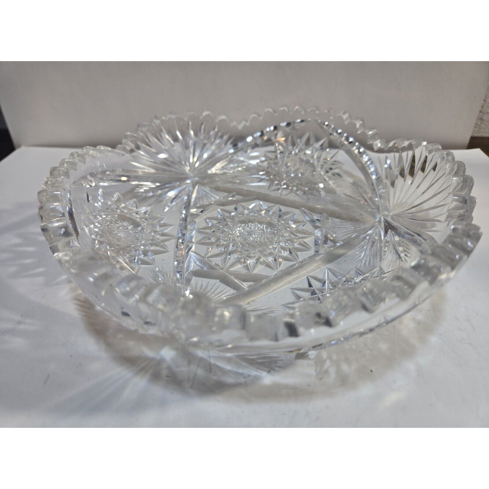 Vintage Cut Crystal Glass Bowl Tray Dish 7"