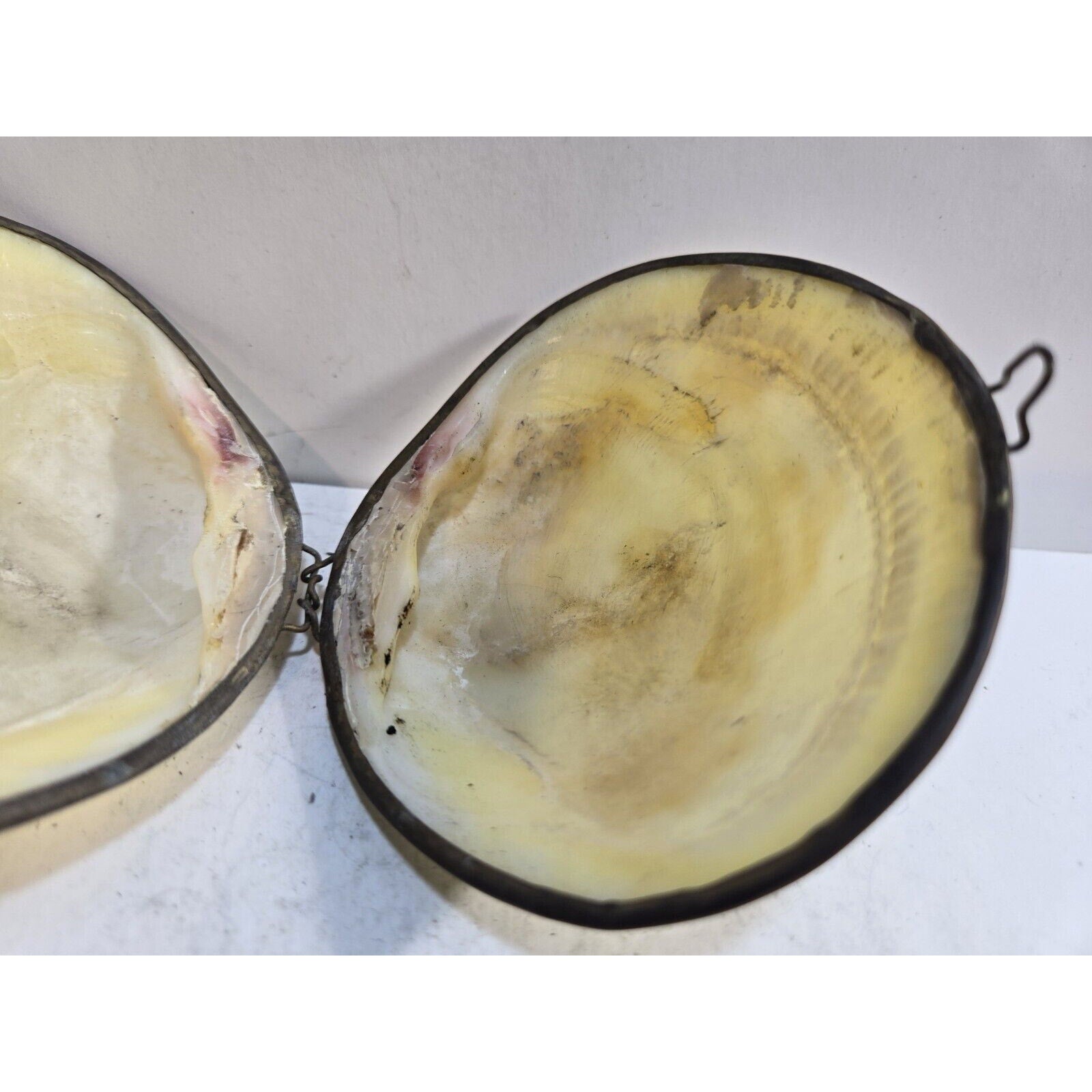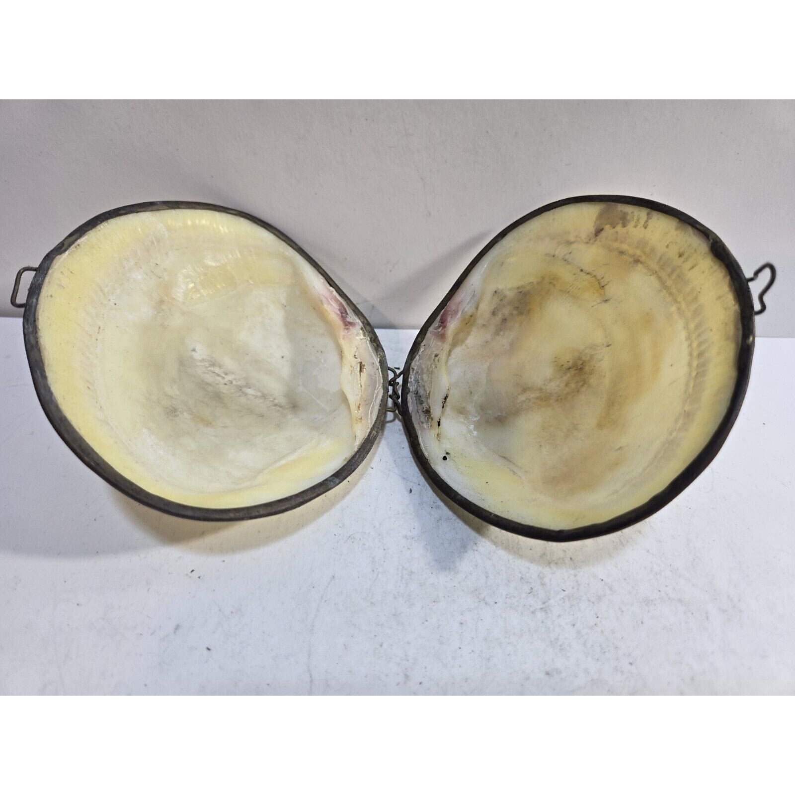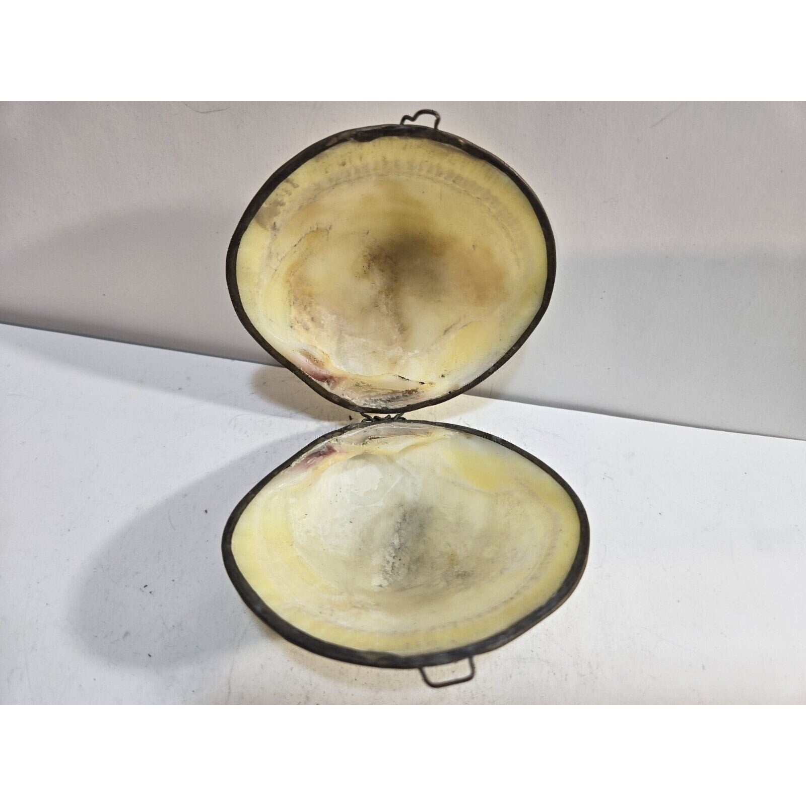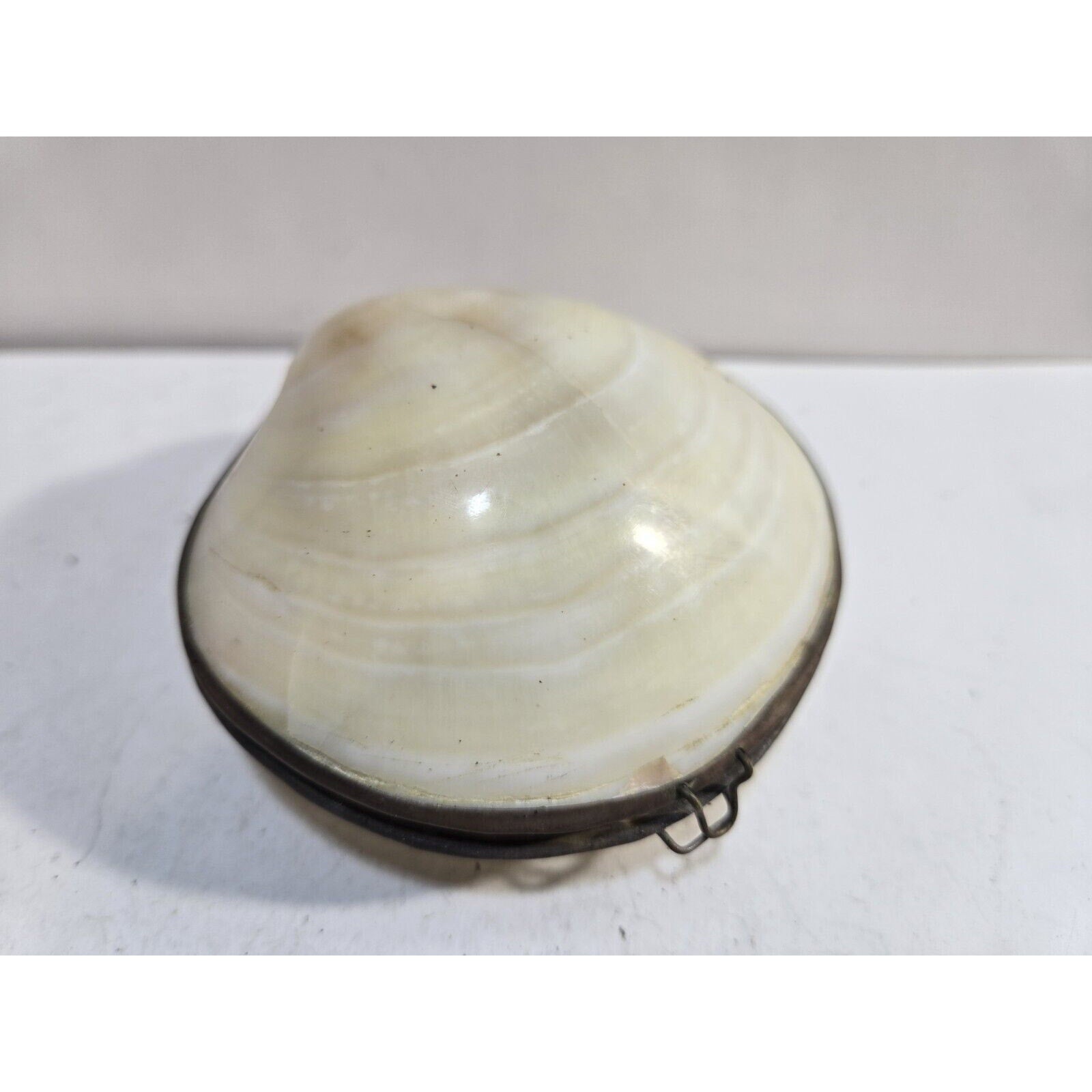 Vintage GENUINE CLAM SEA SHELL Brass Hinged TRINKET Box COIN Purse PILL Box