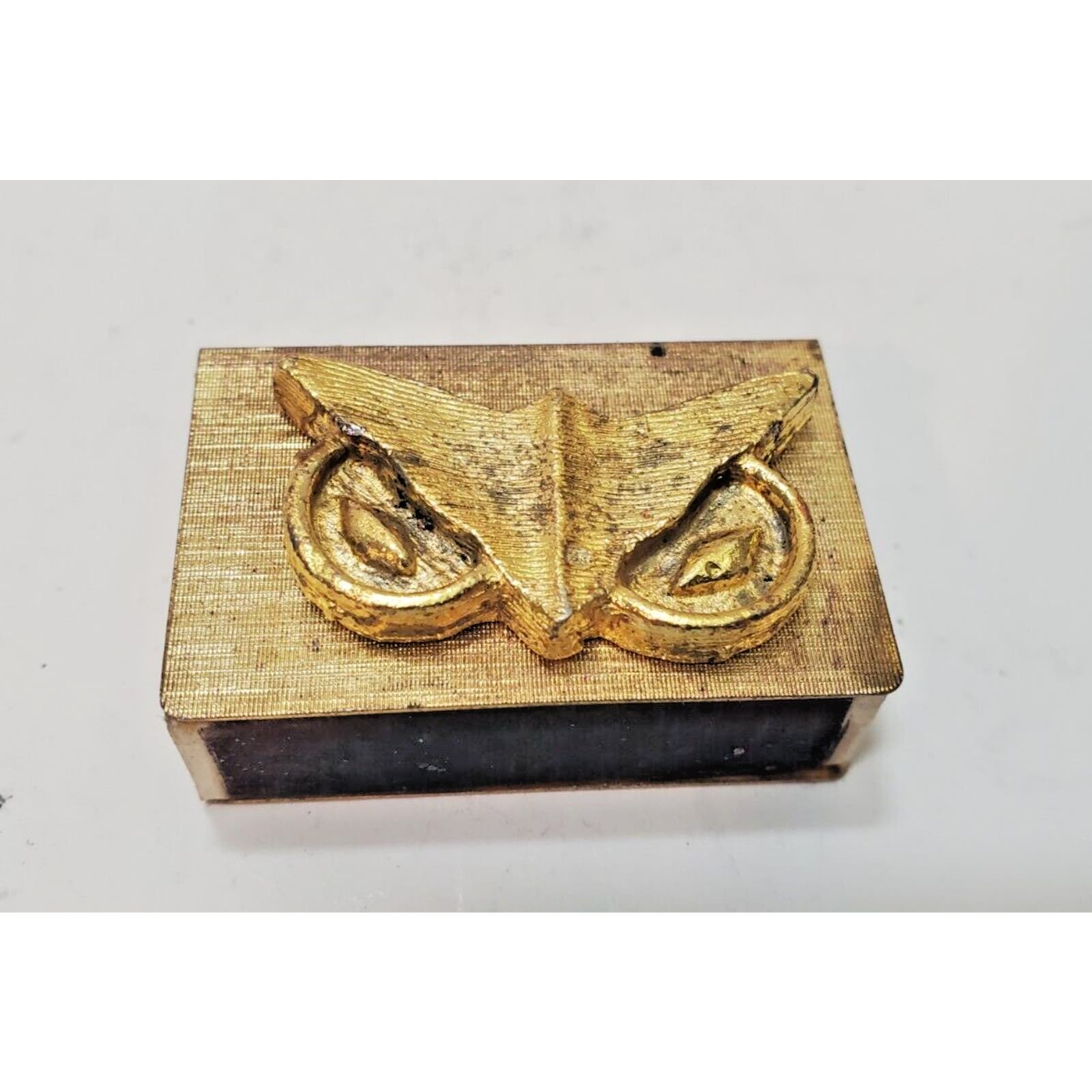 Vintage Gold Tone Metal Match Box Holder & Box 1-1/4" x 1-3/4" Sweden 6095-8/31