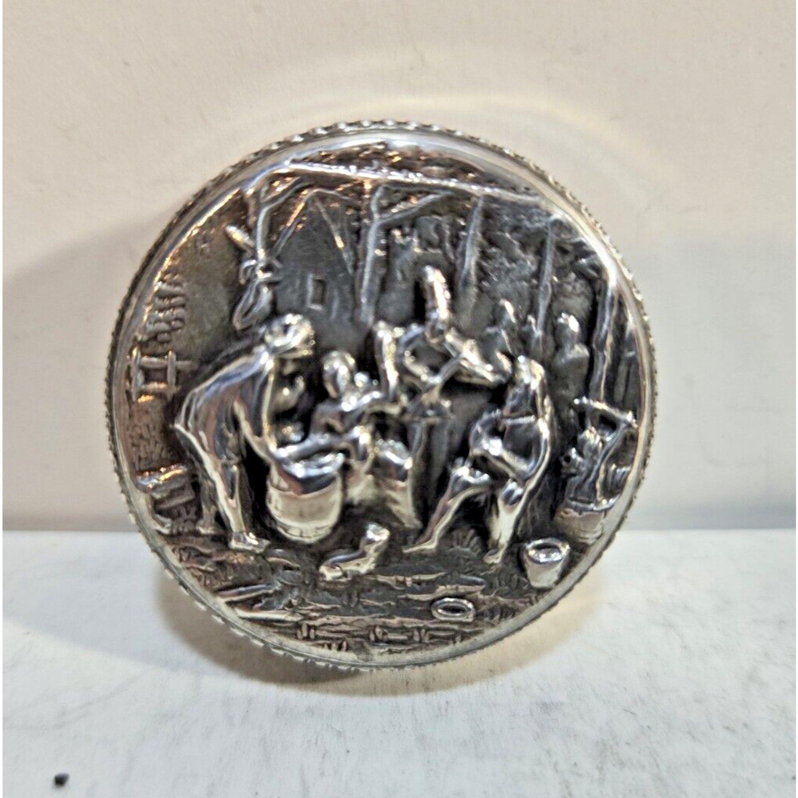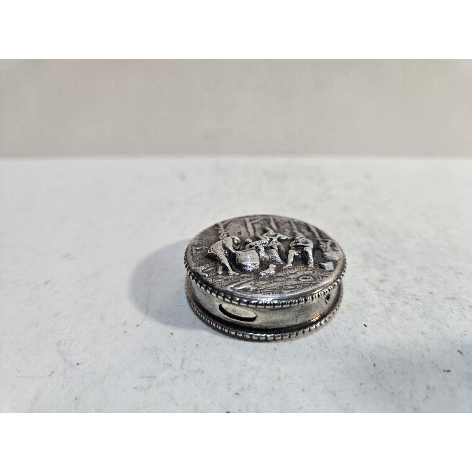 Vintage Hans Jensen Denmark Silver Repousse Snuff Case Pill Box 7319/4