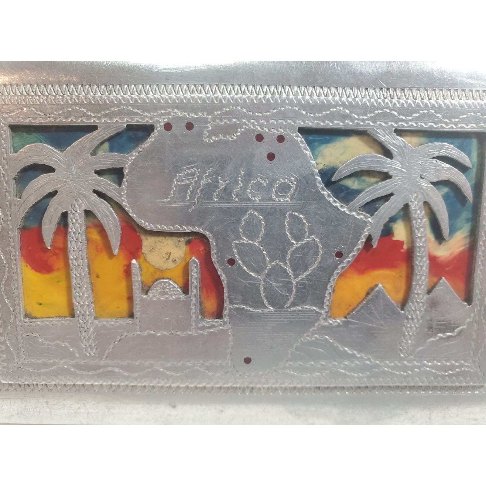 Vintage Silver Tone Ornate Africa POW WWII Cigarette Case, Pin up Girl, 5916/21