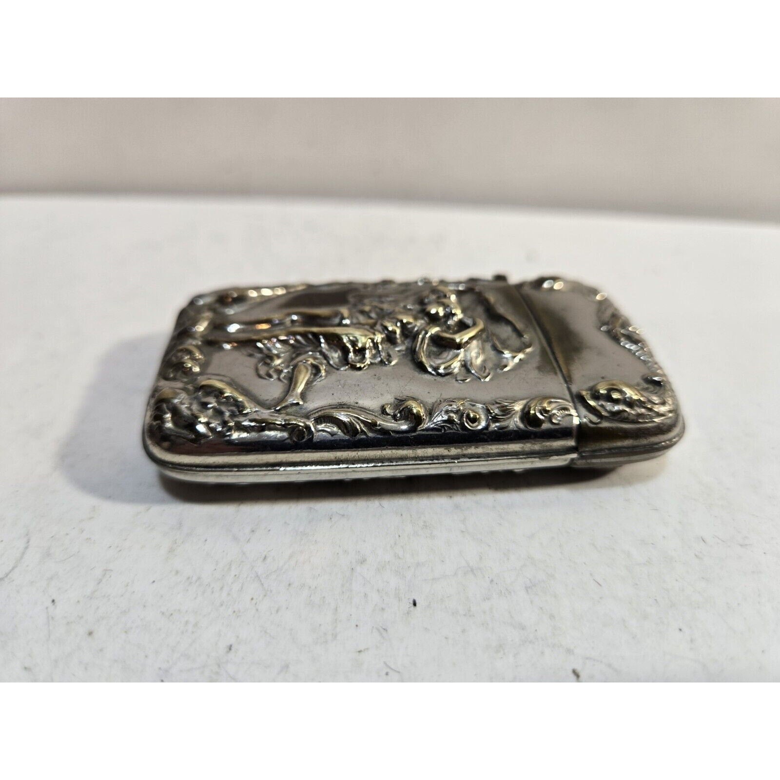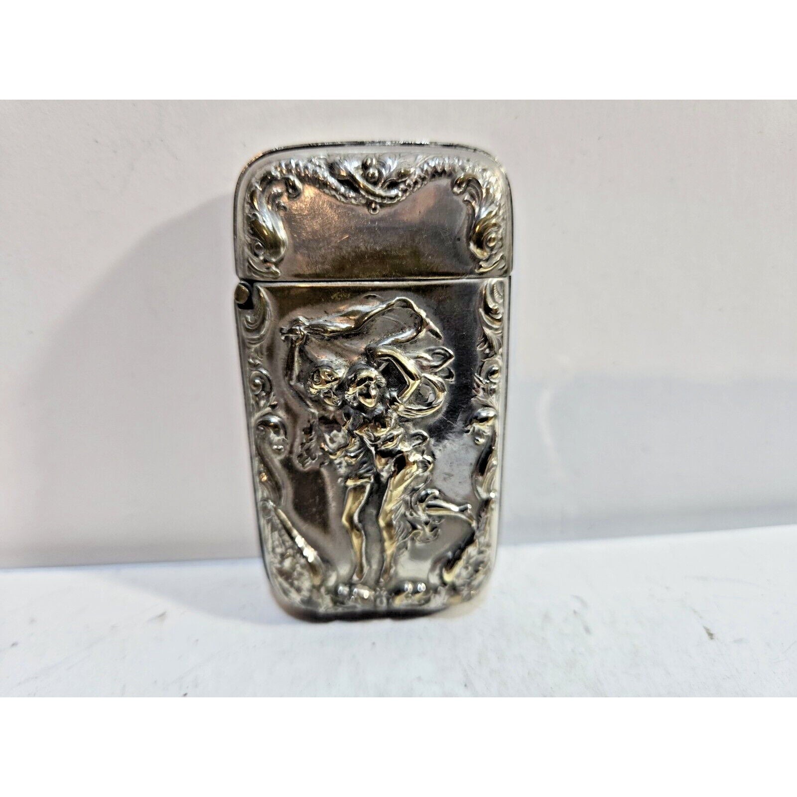 Vintage Silverplate Art Nouveau Dancing Nude Women Match Case Safe Vesta Nymph