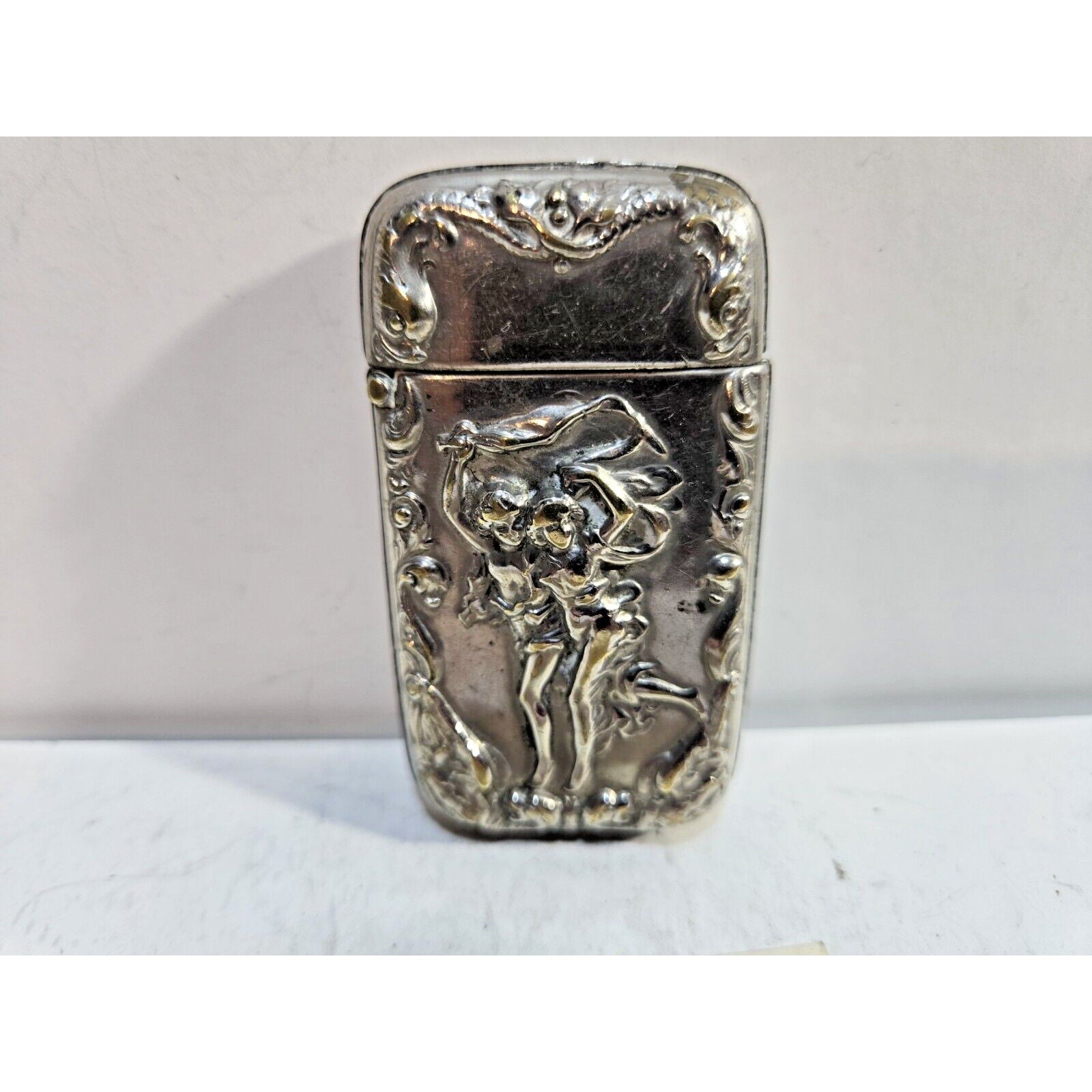 Vintage Silverplate Art Nouveau Dancing Nude Women Match Case Safe Vesta Nymph