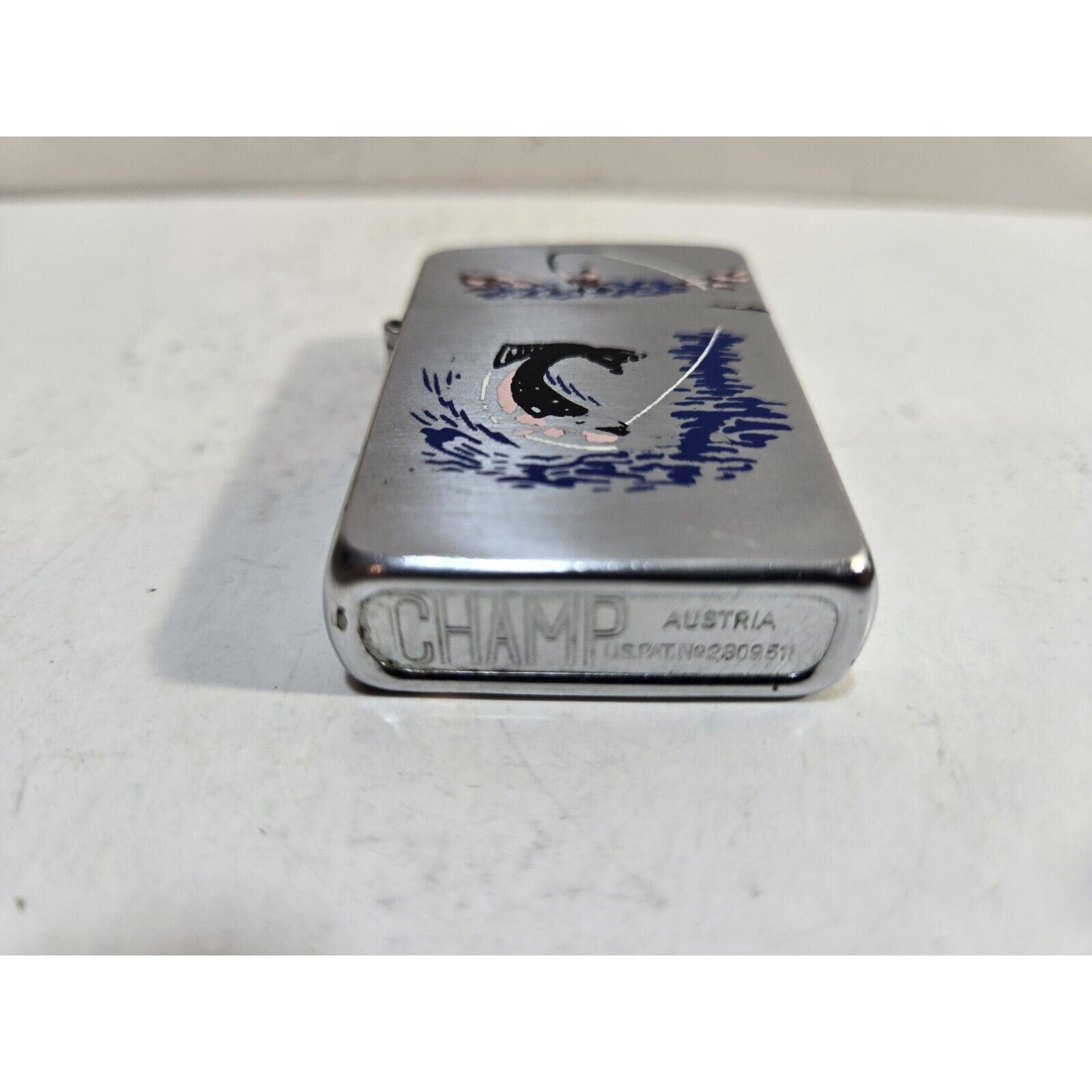 Vintage Working Champ, Fisherman Austria, SILVER Tone LIGHTER 7648/27