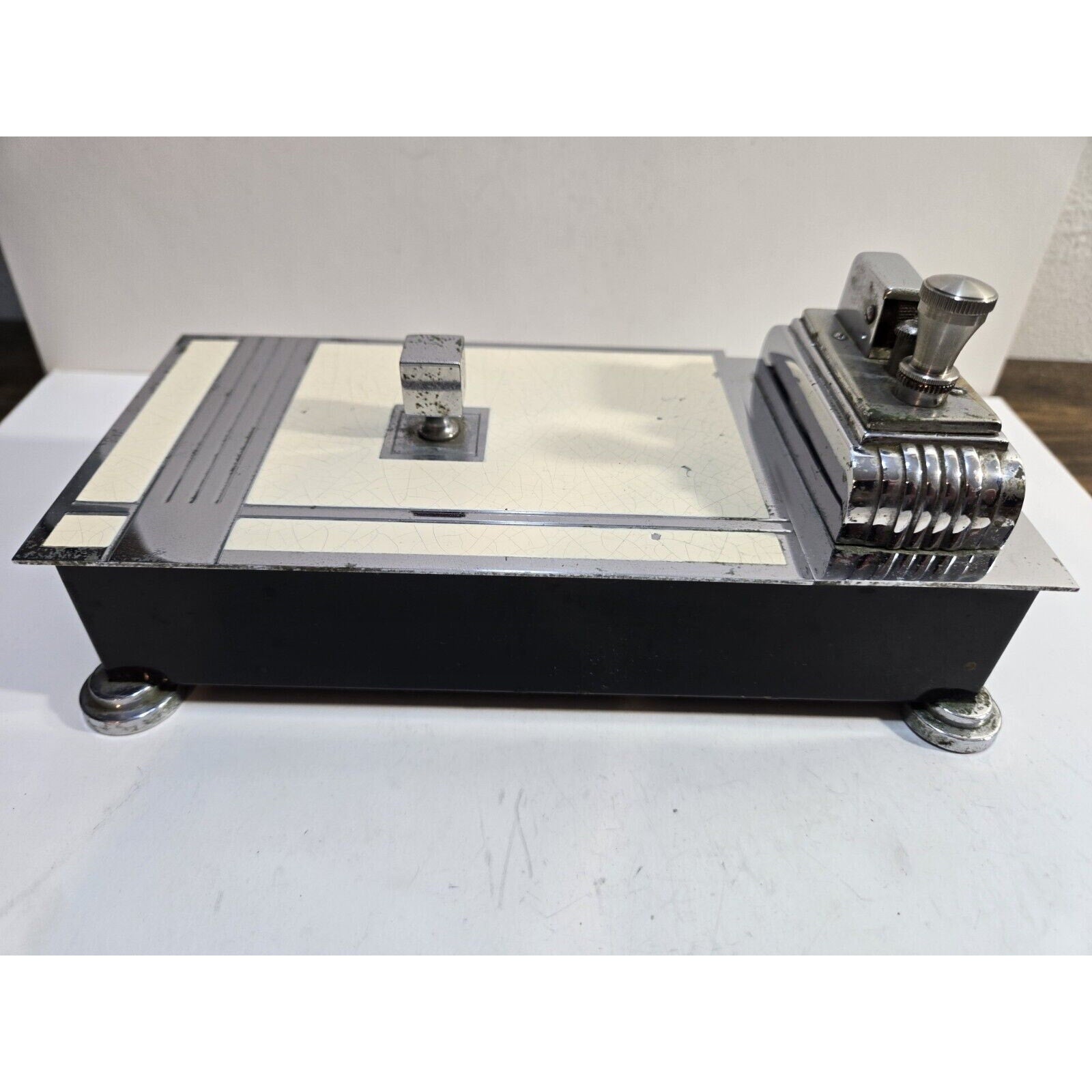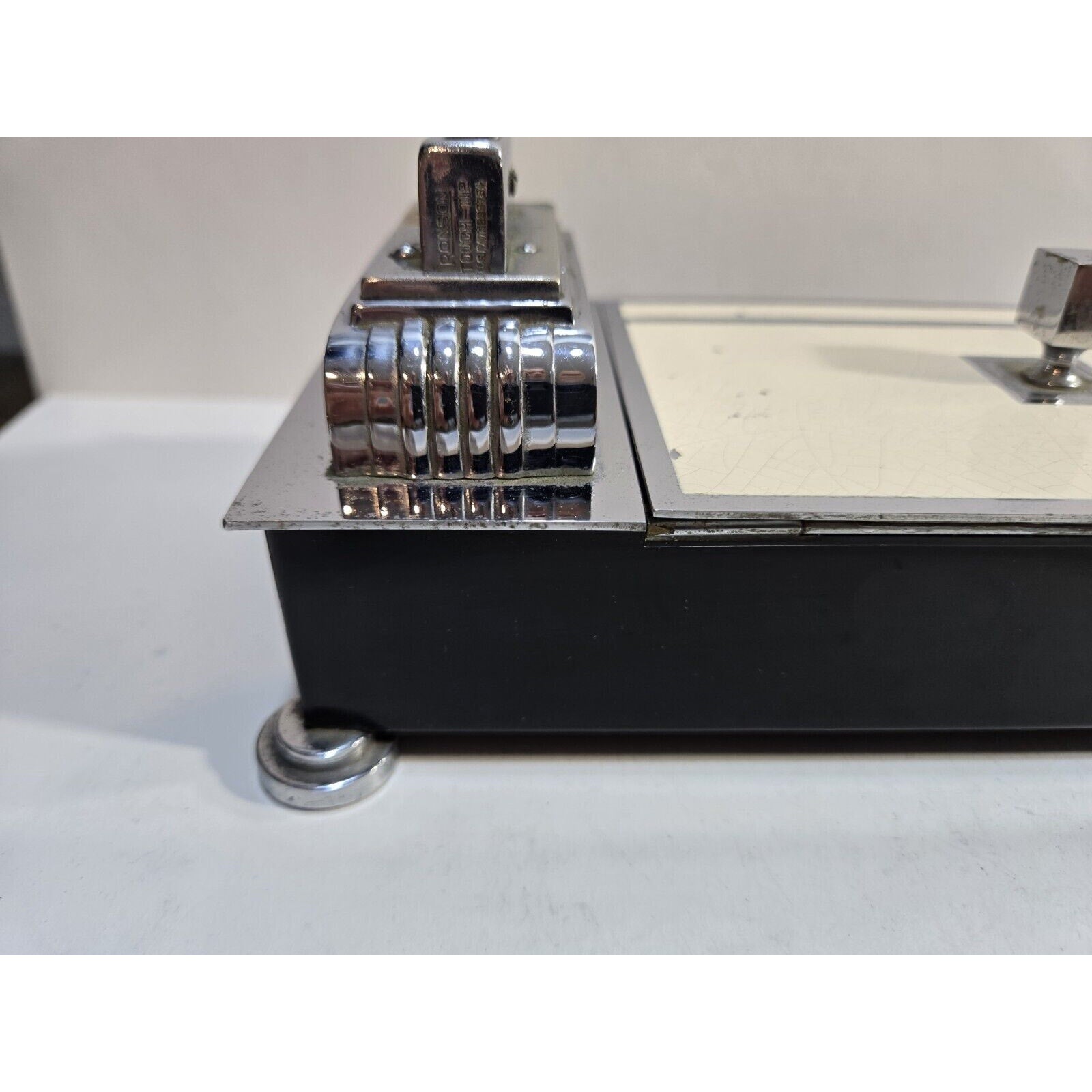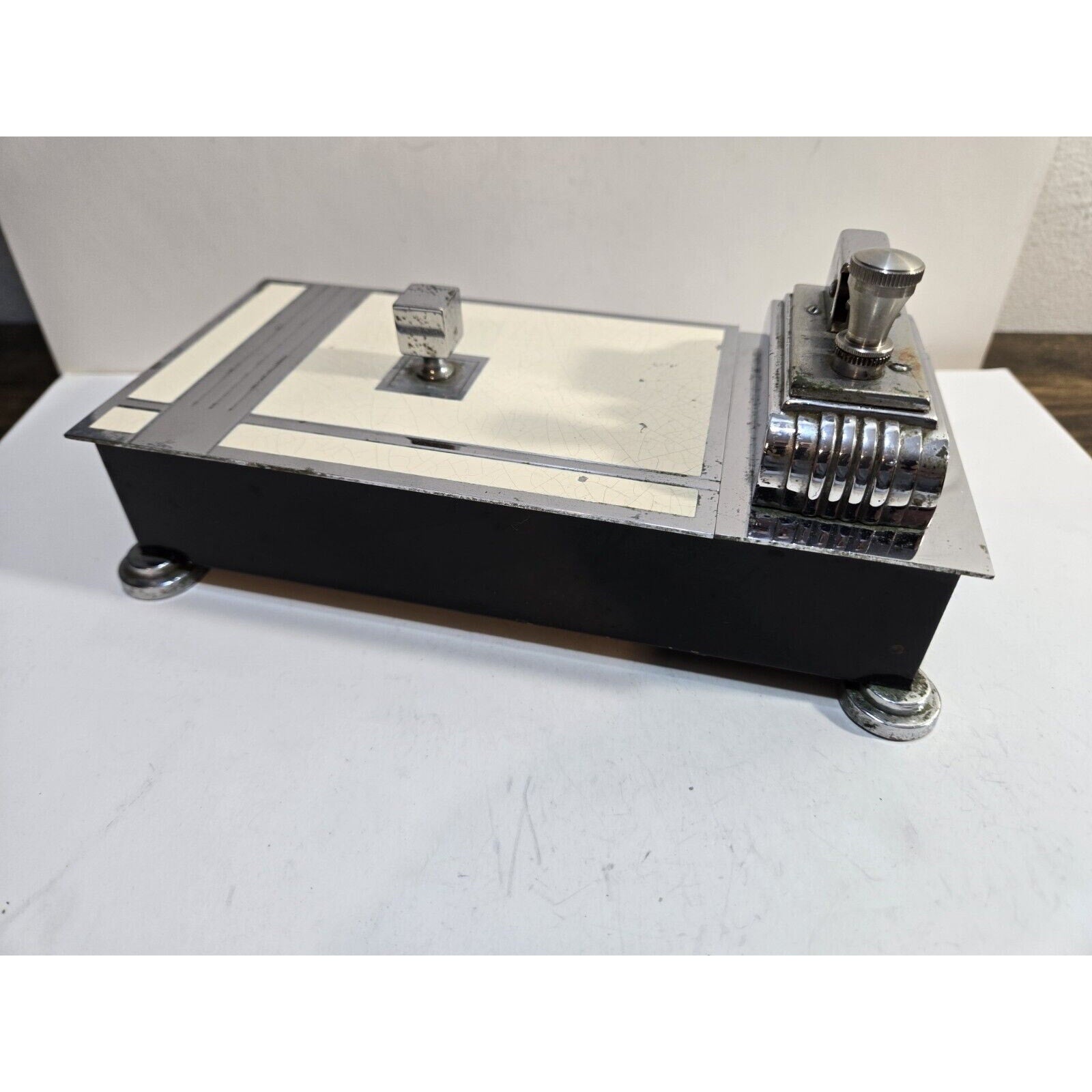 Vintage Working Ronson Chrome Black Enamel Touch Tip Lighter & Cigarette Box