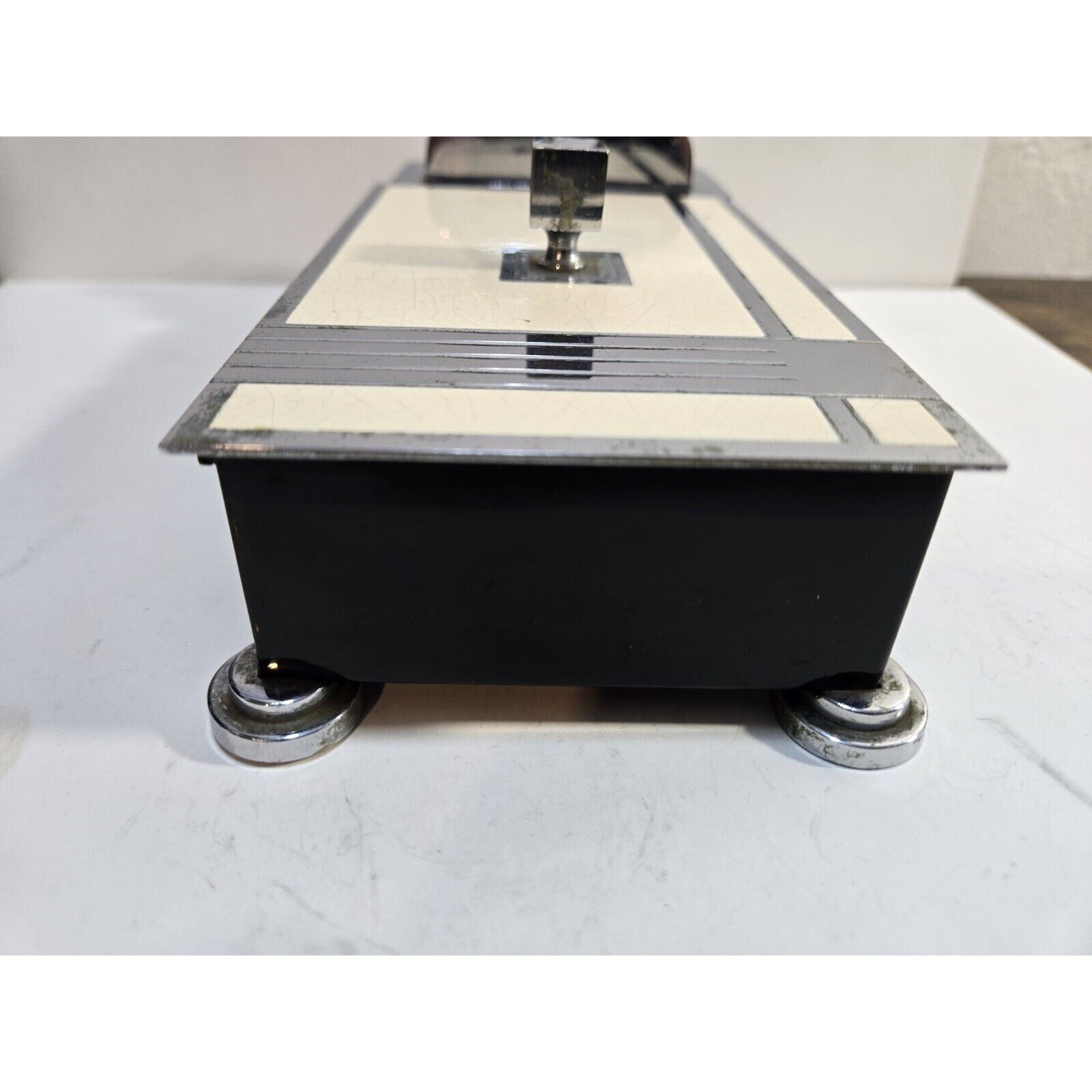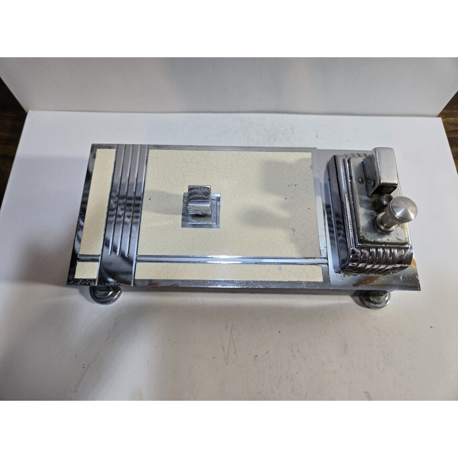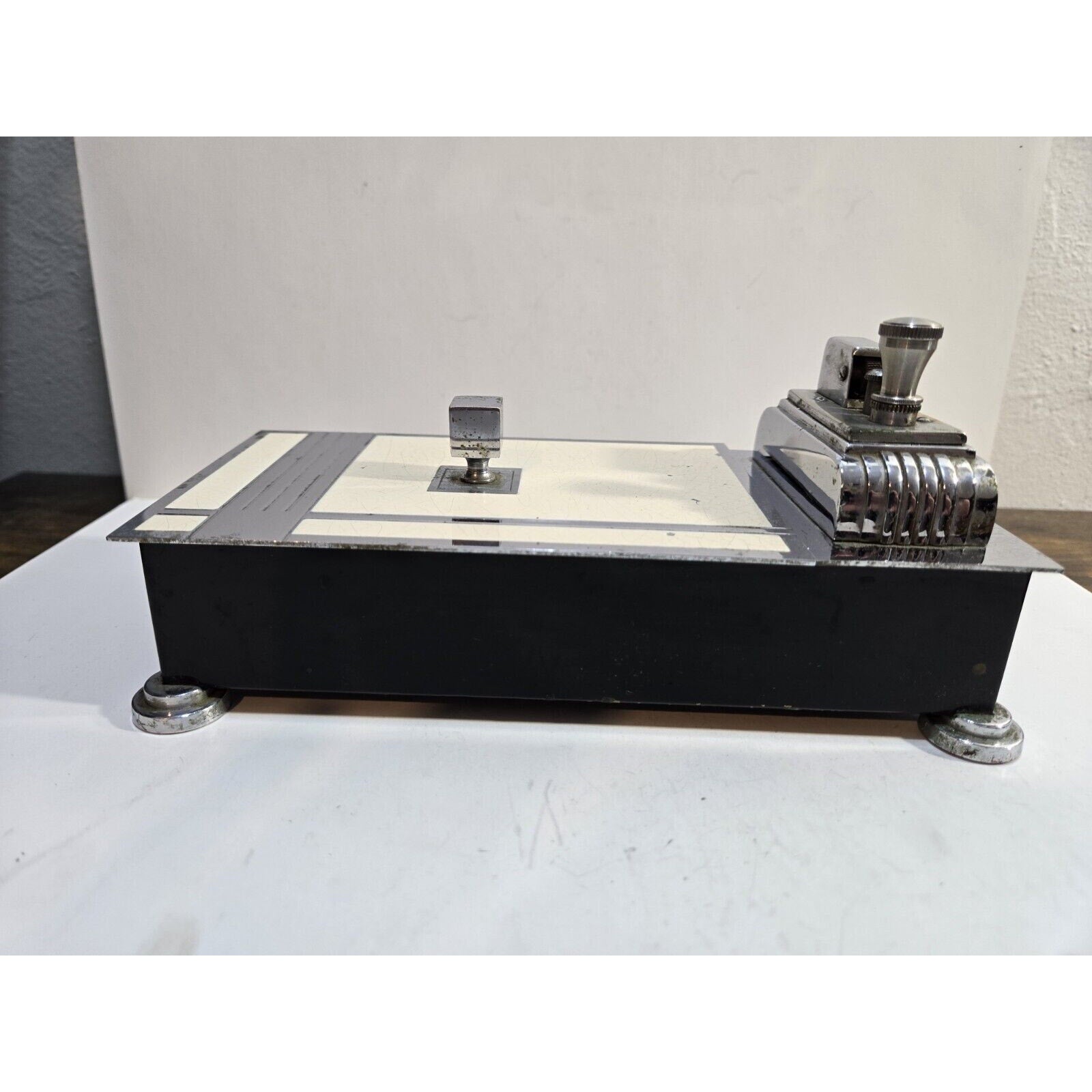 Vintage Working Ronson Chrome Black Enamel Touch Tip Lighter & Cigarette Box