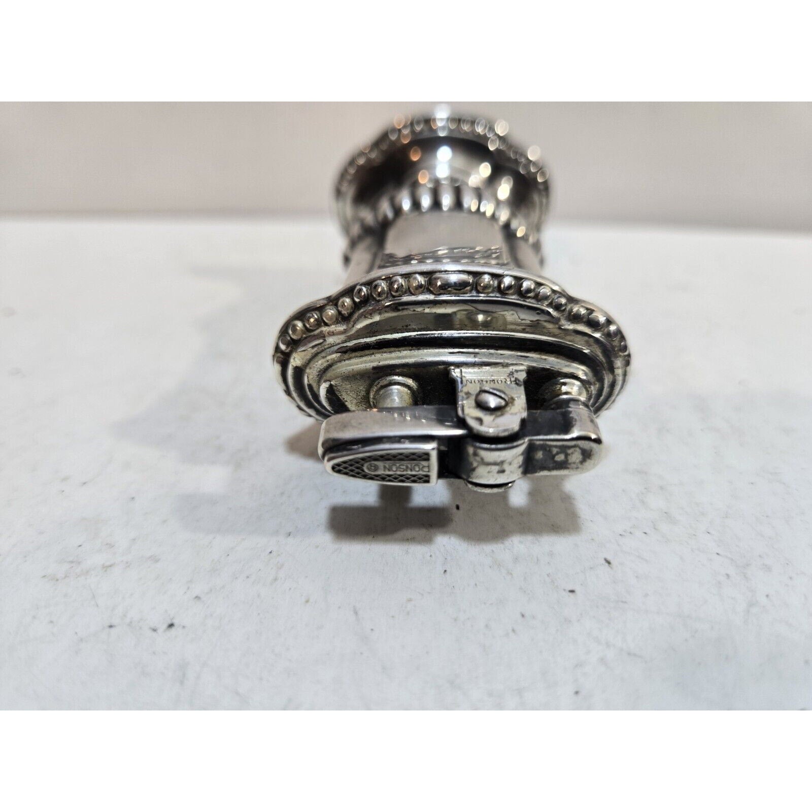 This vintage Ronson Mayfair silverplate table lighter hails from the 1950s and is a true gem for collectors. With its intricate design and functionality, it is a must-have for any tobacco enthusiast or lover of vintage items. The lighter was manufactured in the United States and bears the brand's signature 7395/13 model number. Add this exquisite piece to your collection today!