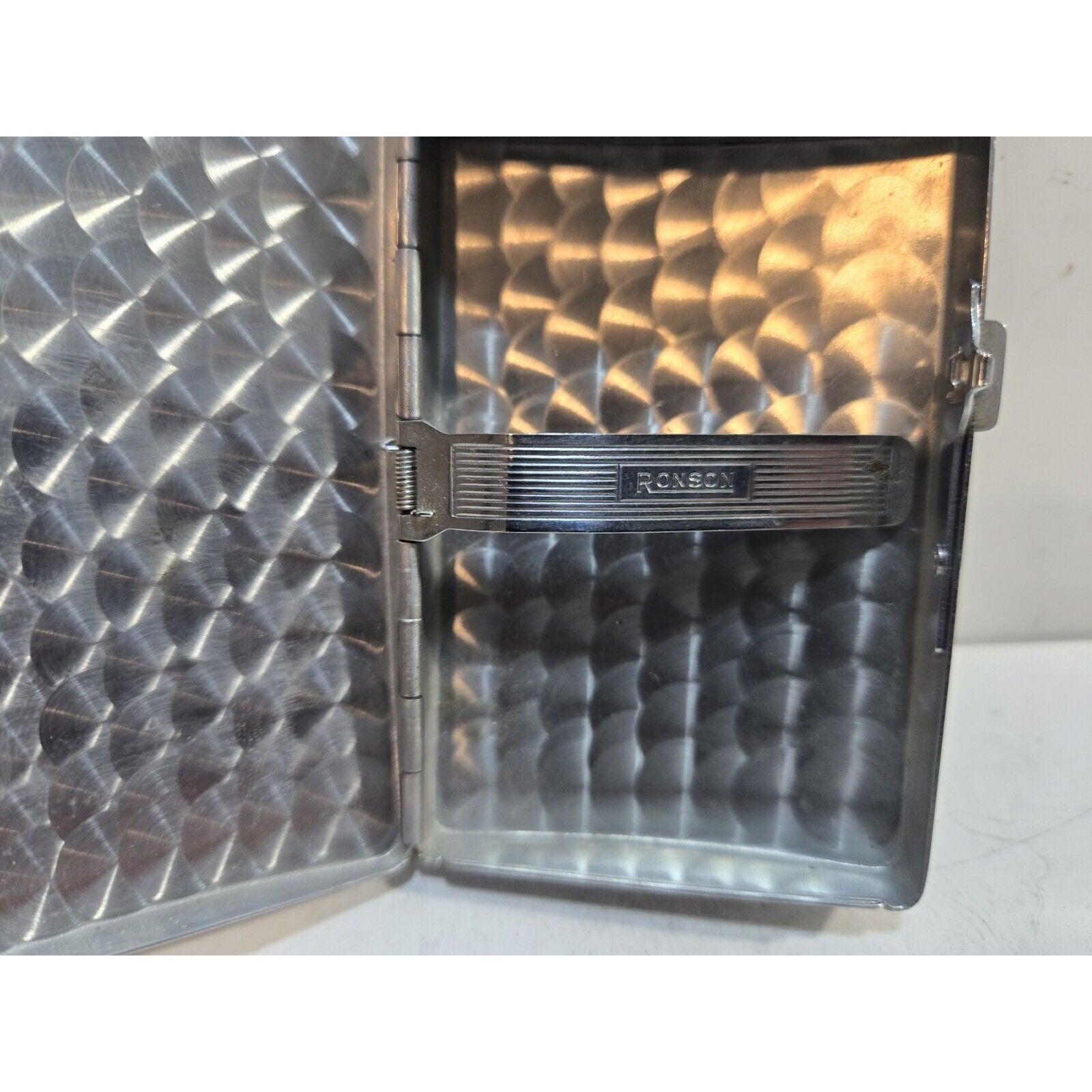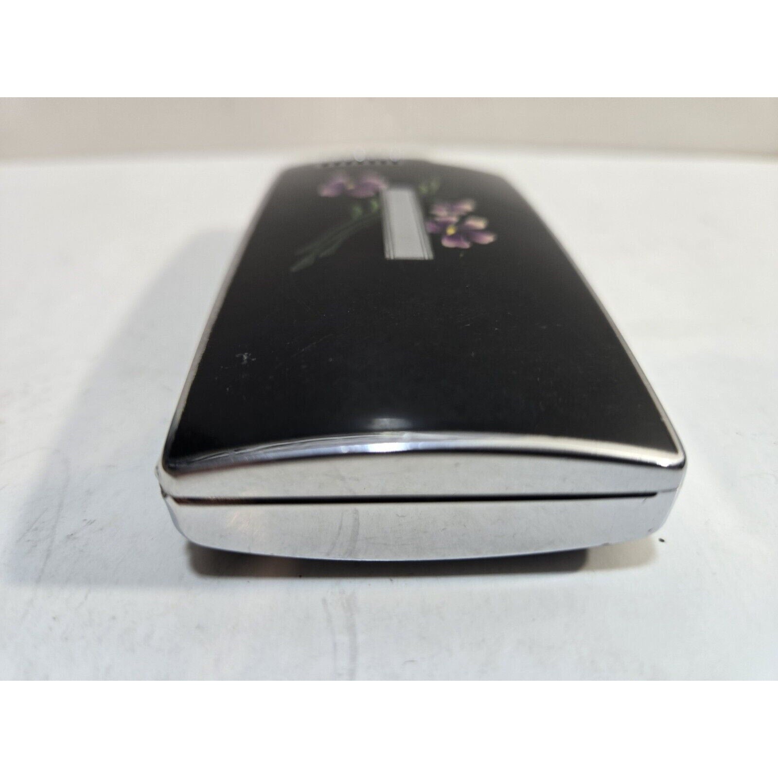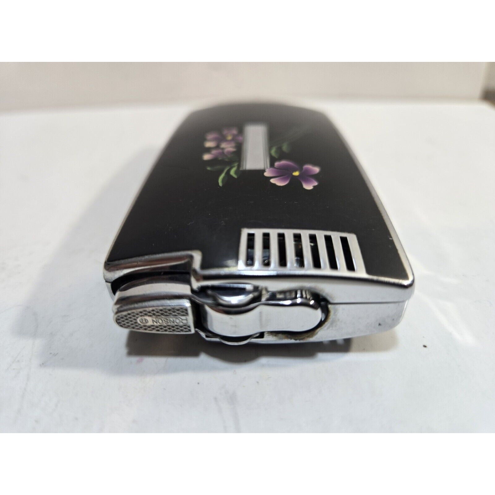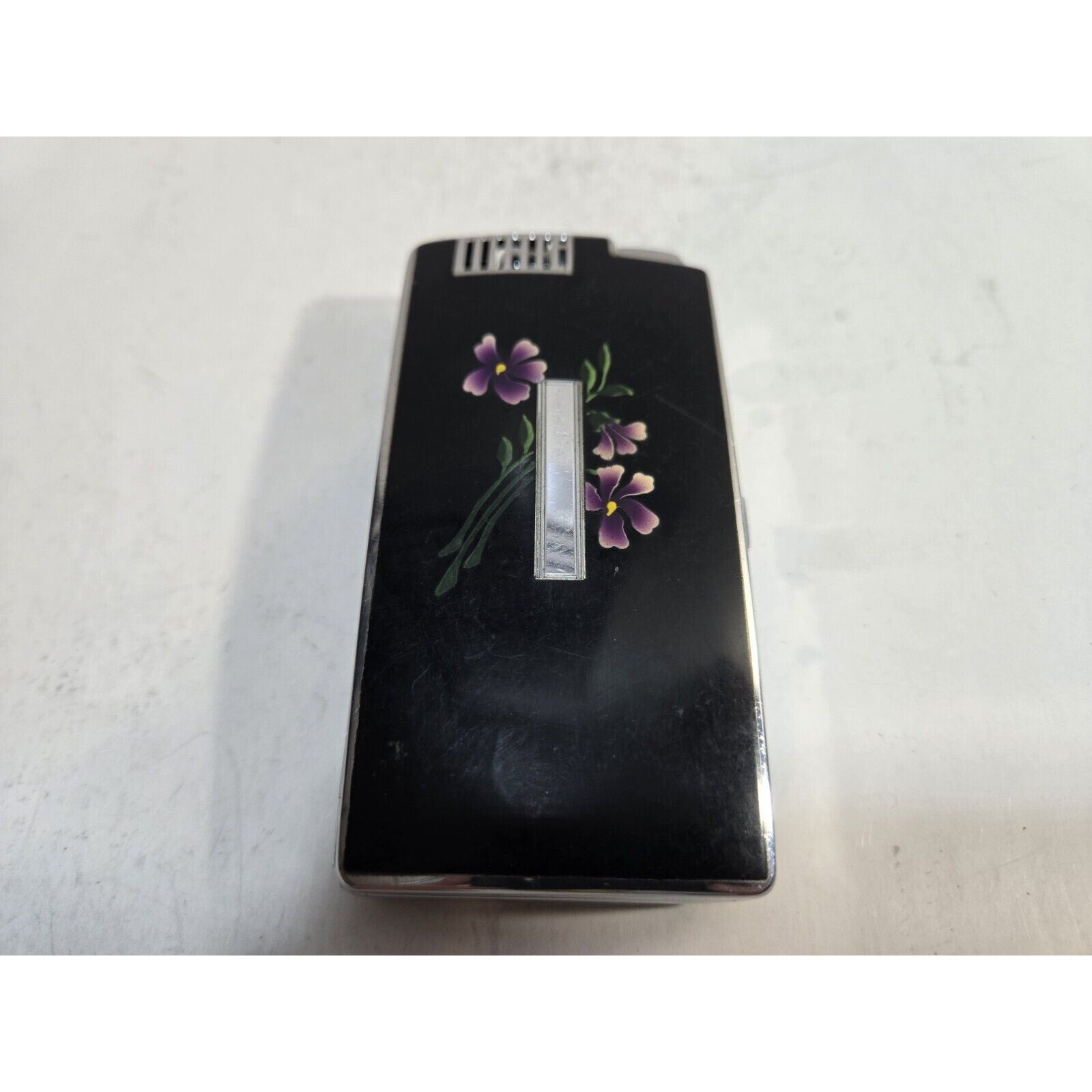 Vintage Working Ronson Pal Cigarette Case LIGHTER Black Violet Flower 7651/14