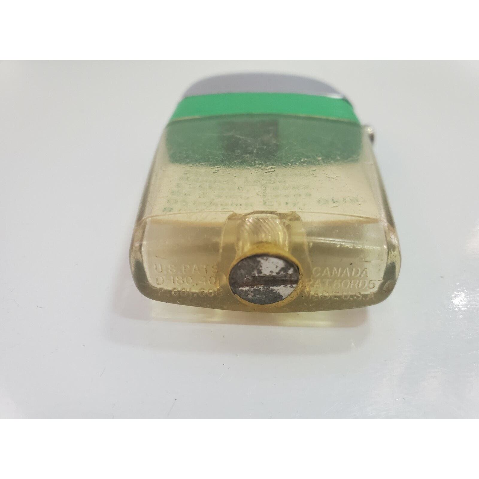 Vintage Working Scripto VU Lighter "REDI RAIN" LOGO ADVERTISING, GREEN 4407/29