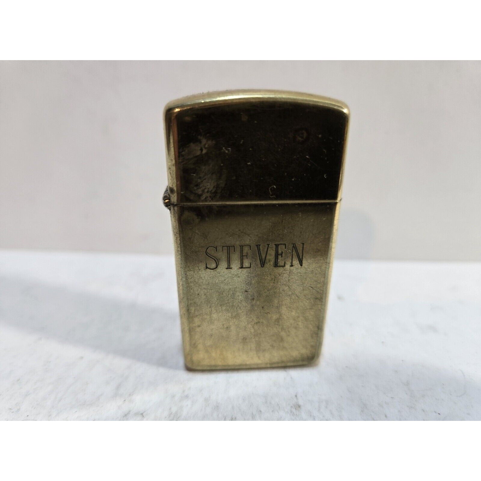 This vintage Zippo brass lighter is a must-have for any collector or tobacco enthusiast. Made in the United States, this piece is a true gem that is sure to impress. The lighter's intricate design and quality construction make it a reliable and stylish accessory that will last for years to come. Featuring the iconic Zippo brand, this lighter is a great addition to any collection. Its unique design and high-quality construction make it a standout piece that is sure to impress. Whether you're a collector or a tobacco enthusiast, this vintage Zippo brass lighter is an excellent choice.