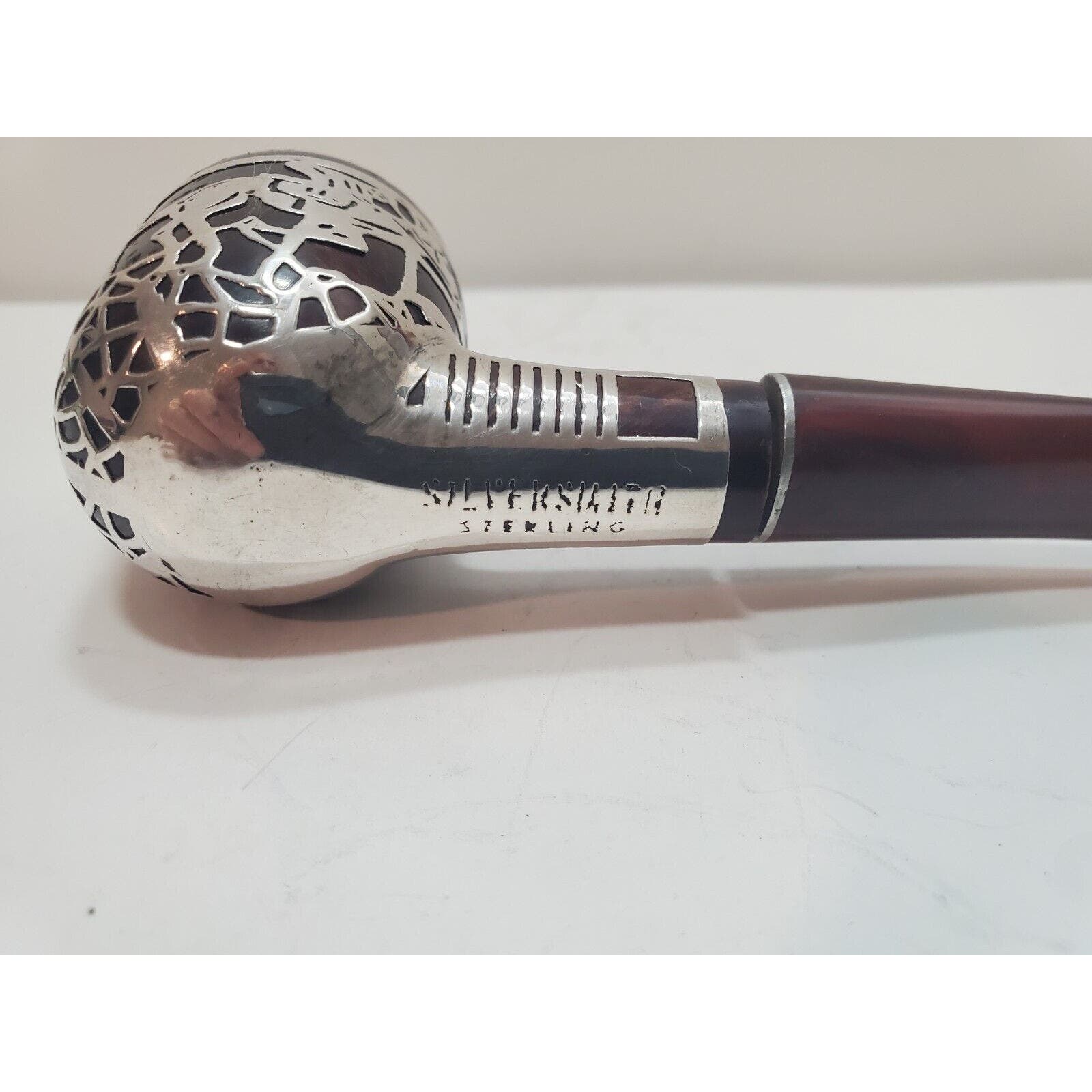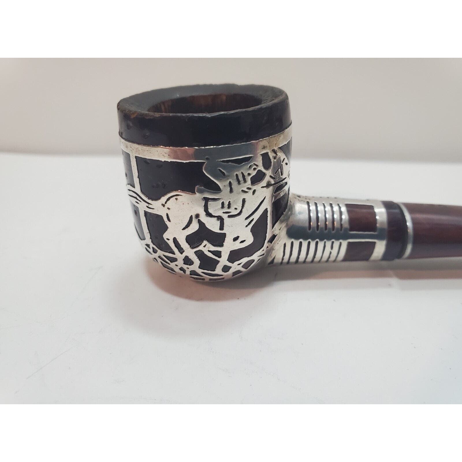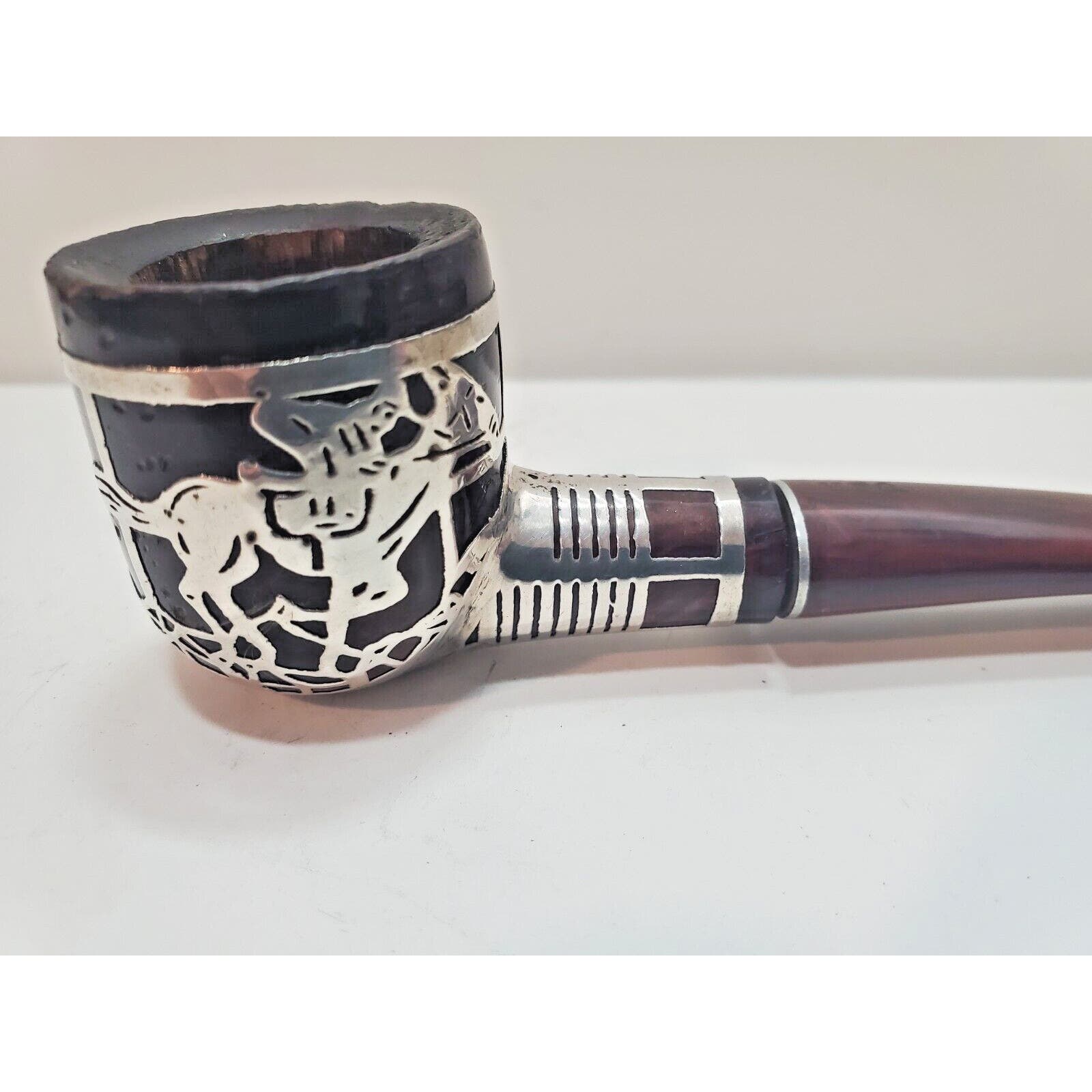 Vtg Sterling Silver 925 Overlay Tobacco Pipe Silversmith Made Jockey On Horse