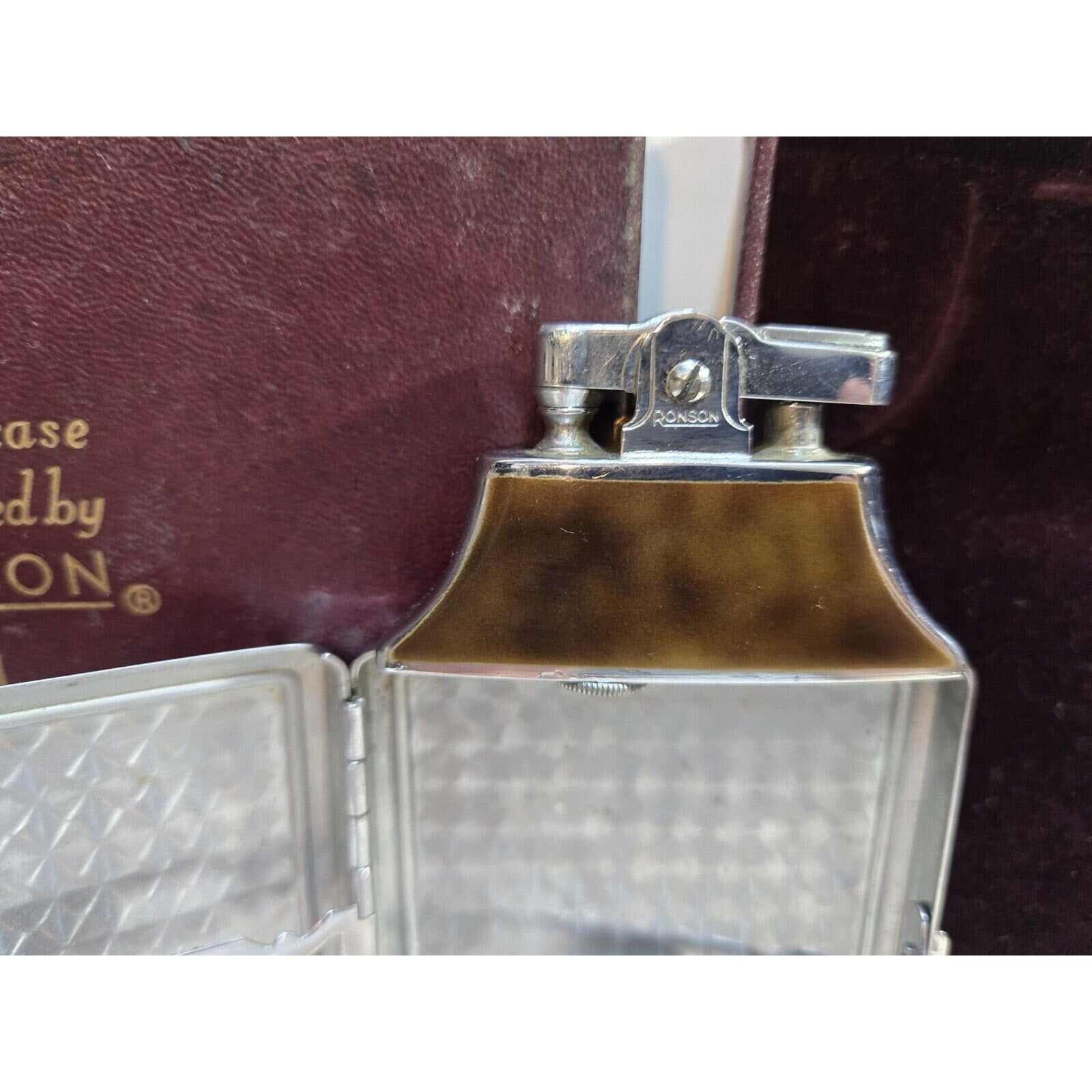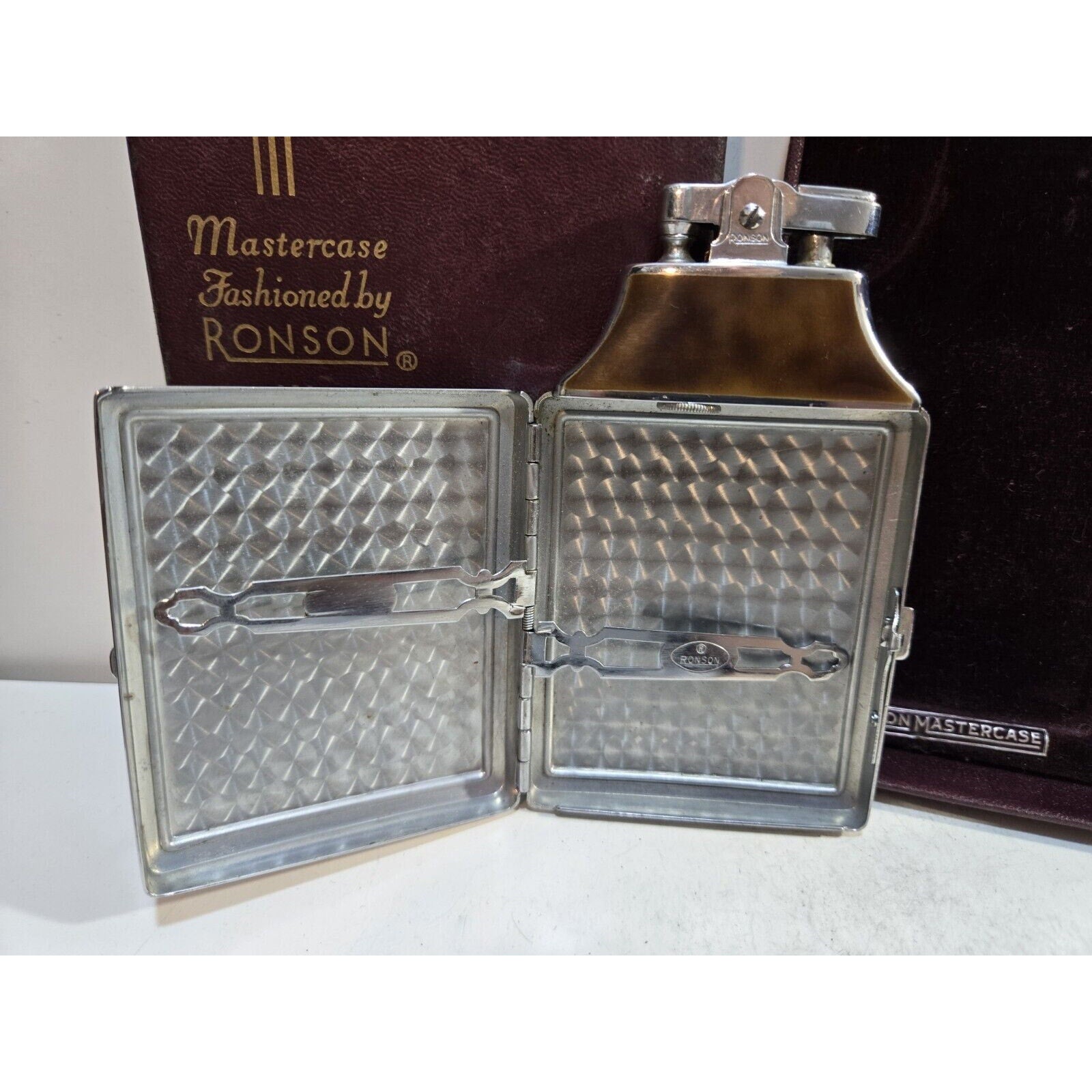 Working Ronson Mastercase Enamel Cigarette Case Lighter Original Case 7163/4