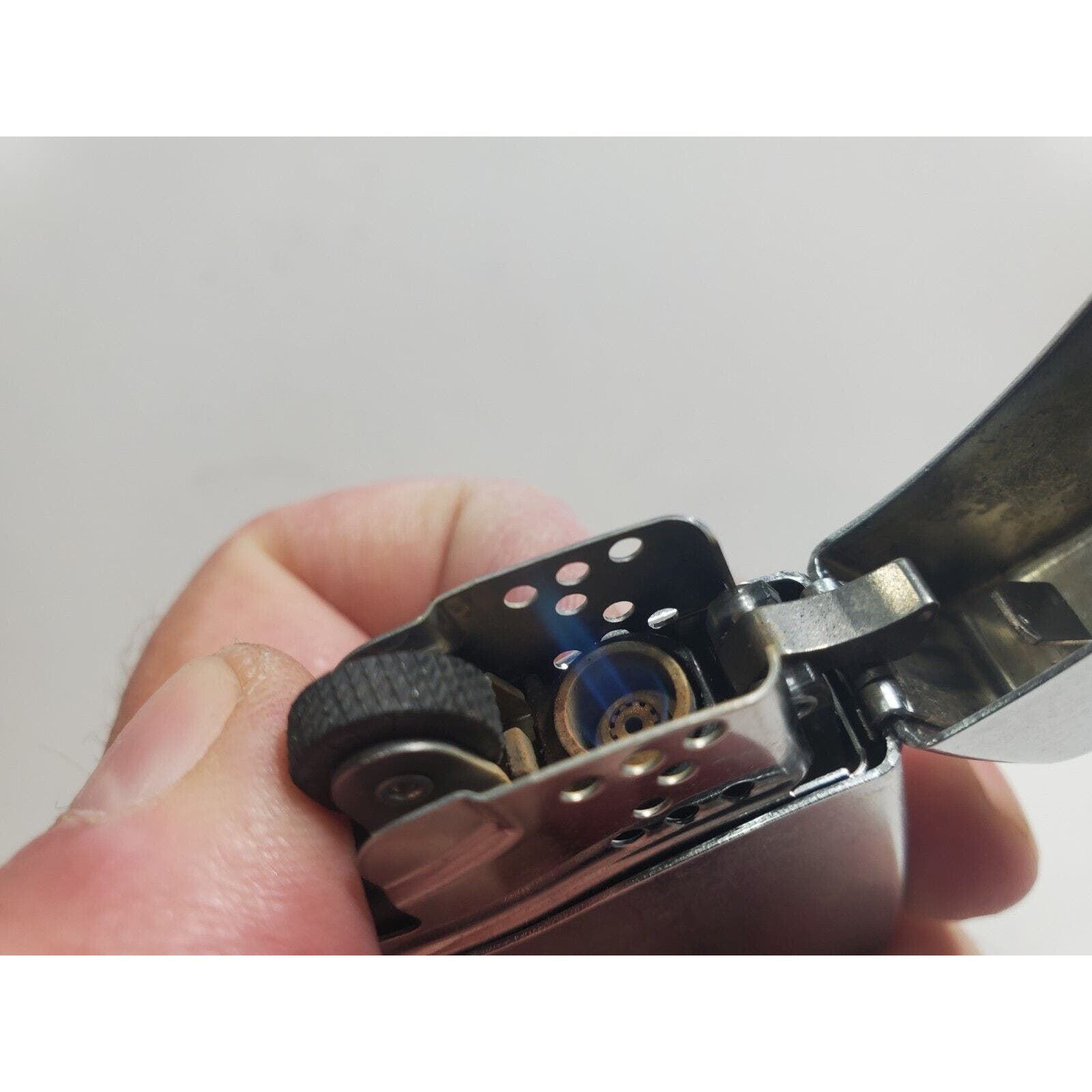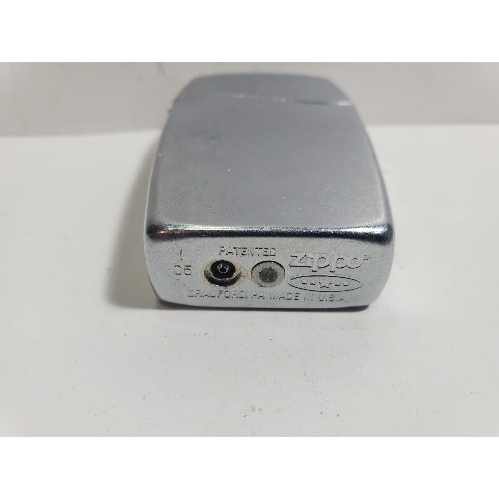 Working Vintage 2005 Zippo Blu Classic Chrome Butane Lighter Made In The USA