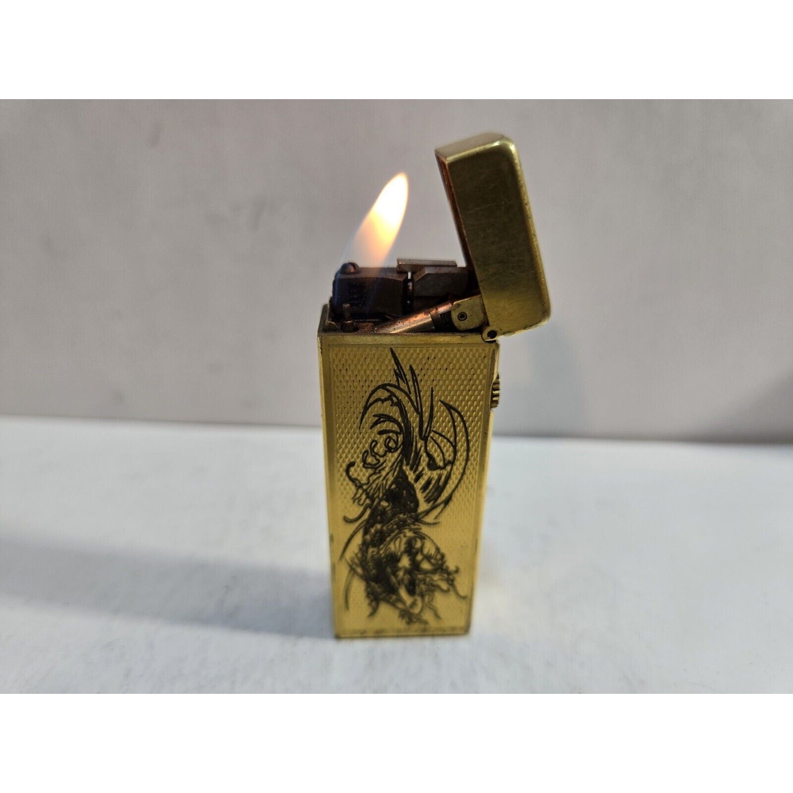 Working Vintage DUNHILL Rollagas Dragon Lighter Gold Tone SWISS MADE 7076/37