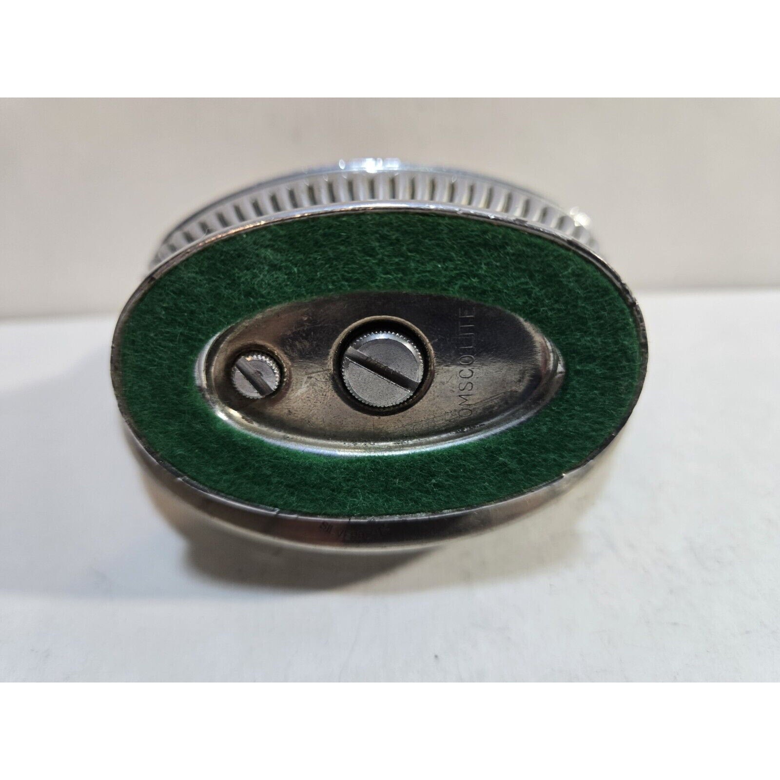Elevate your collectible tabletop accessories with the vintage Ronson Omsco Lite Automatic Table Lighter and Ashtray set. Crafted with precision in Japan, this elegant duo boasts a timeless design and is a testament to the craftsmanship of a bygone era. The lighter is a breeze to use, catering to your every need with its user-friendly mechanism. Accompanied by its sleek ashtray, this set is not just a practical item but also a charming piece for those who appreciate the blend of functionality and style.