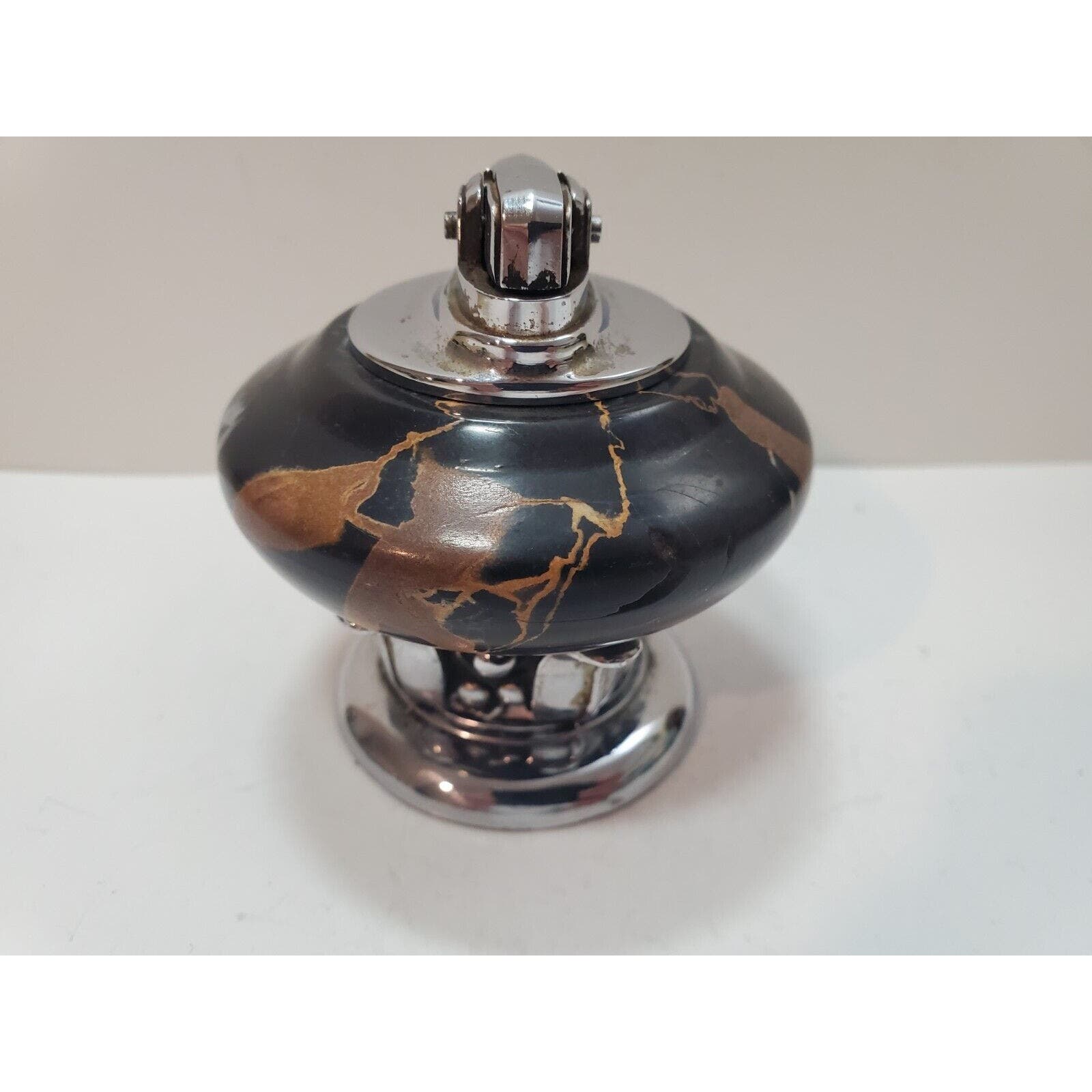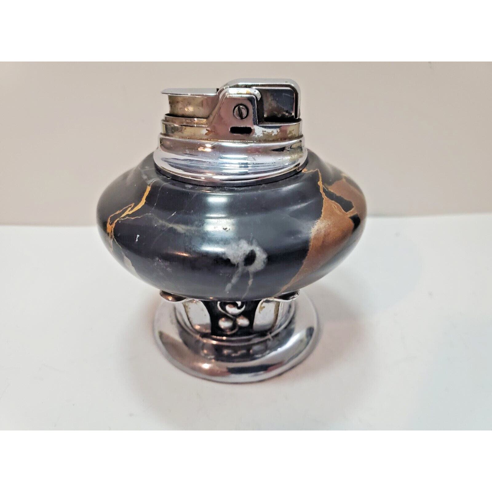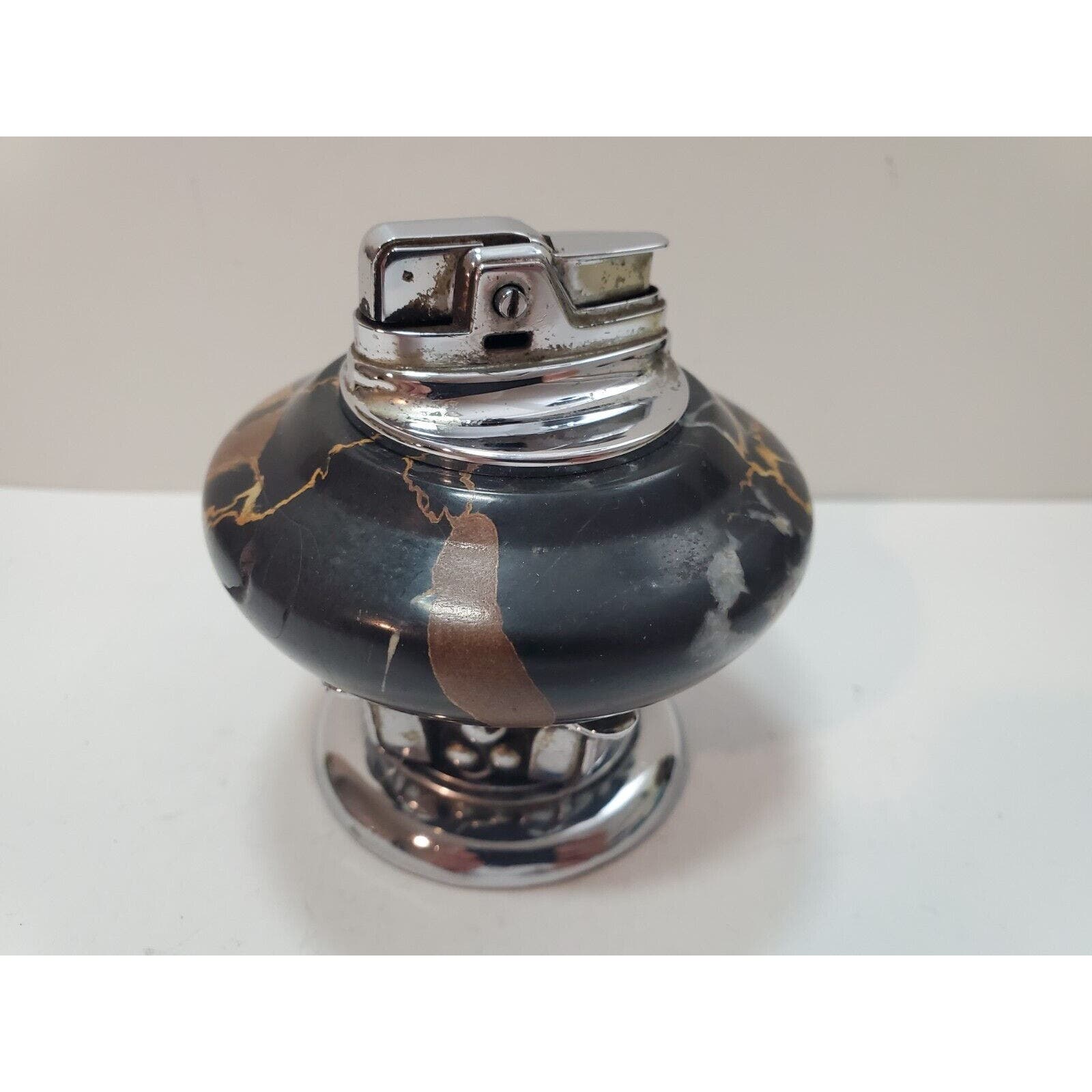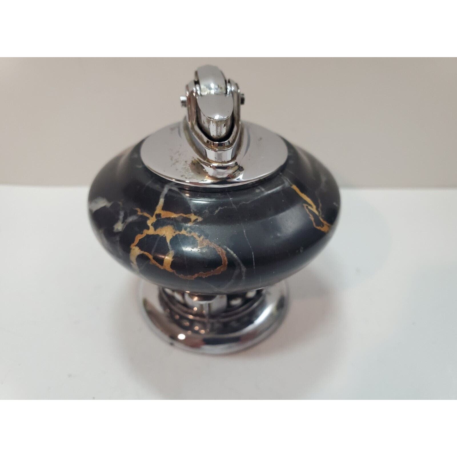 Working Vintage Lighter Ronson NORDIC Italian Black Marble Table Lighter Silver