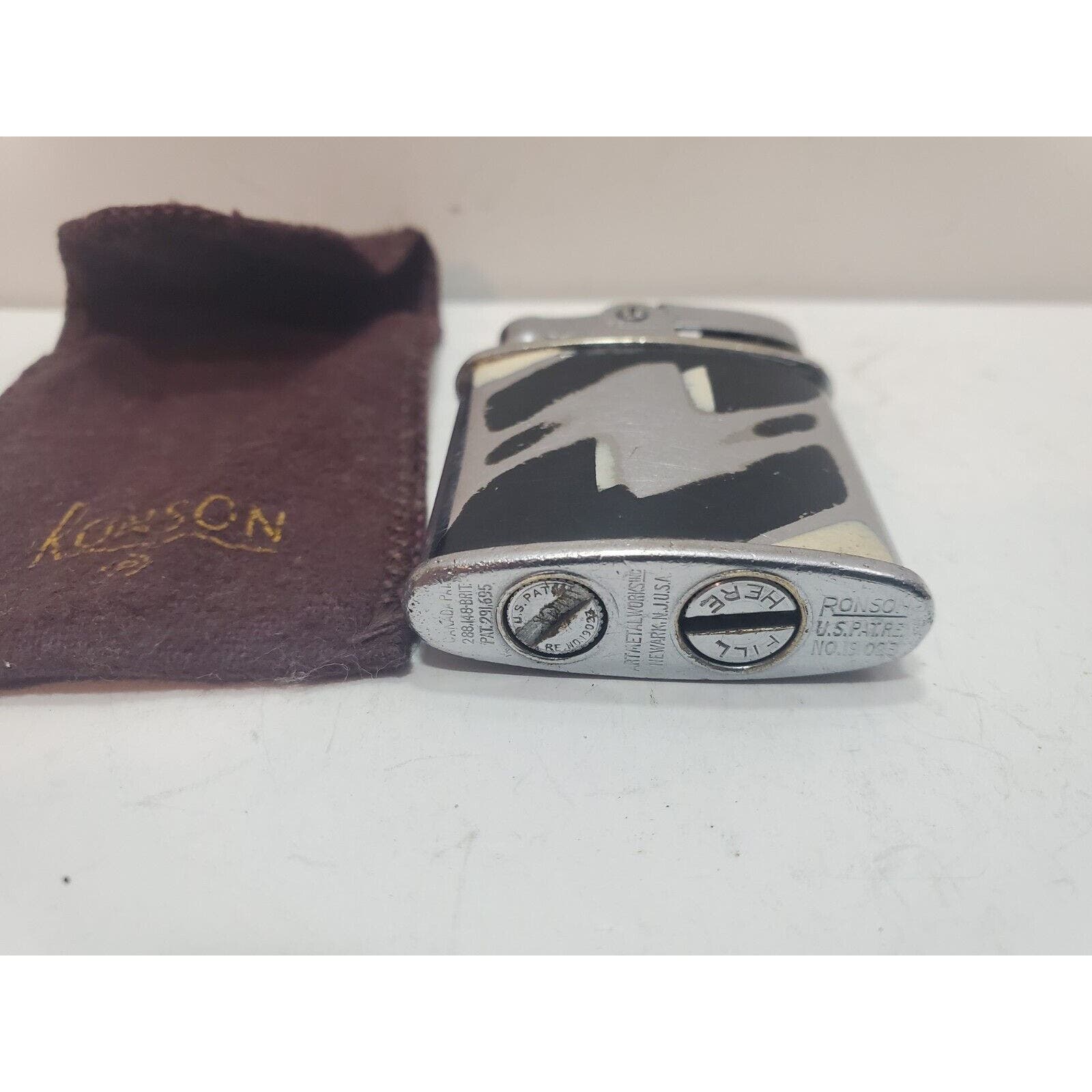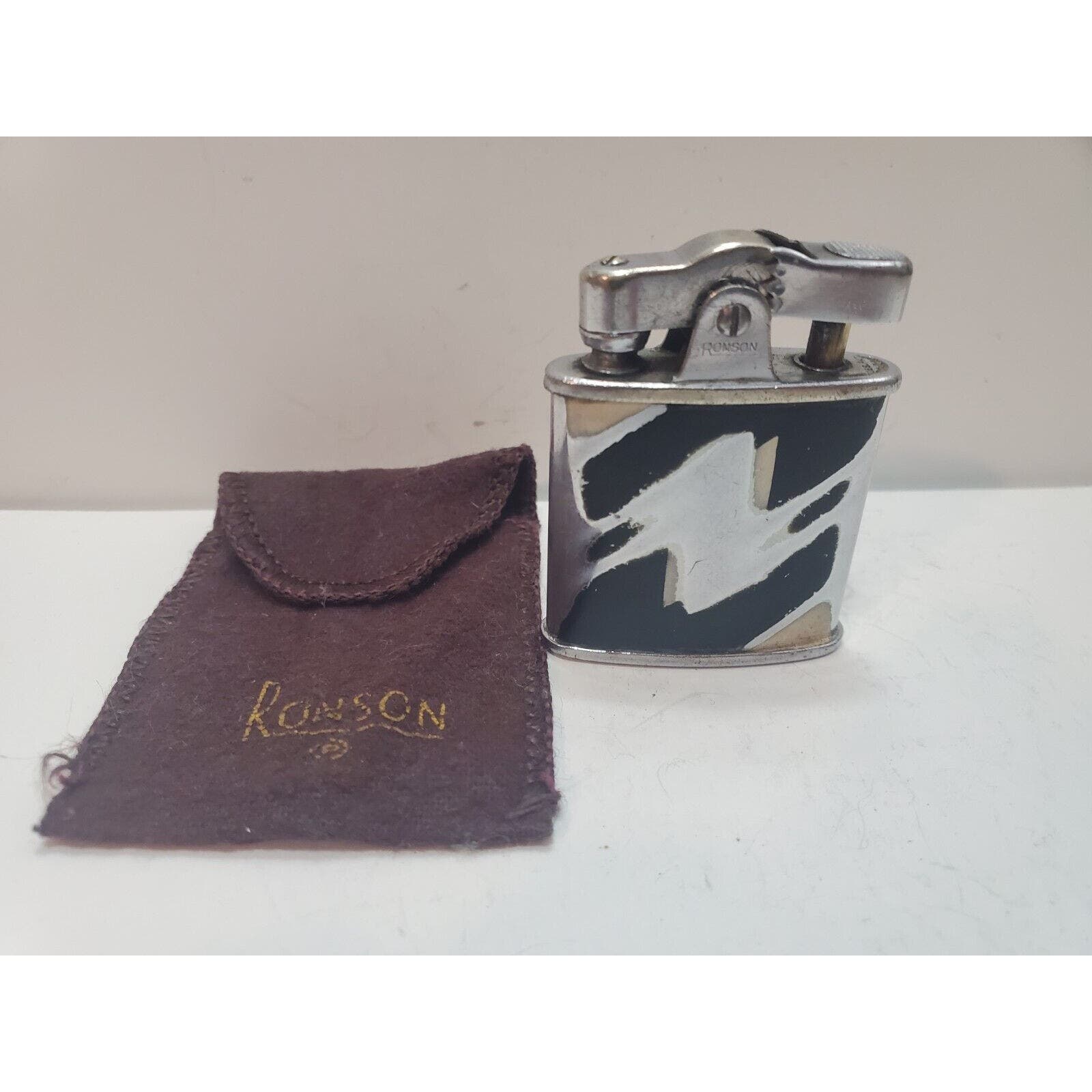 Working Vintage Ronson Art Metal Works Art Deco Enamel, Silver Lighter 6183/26